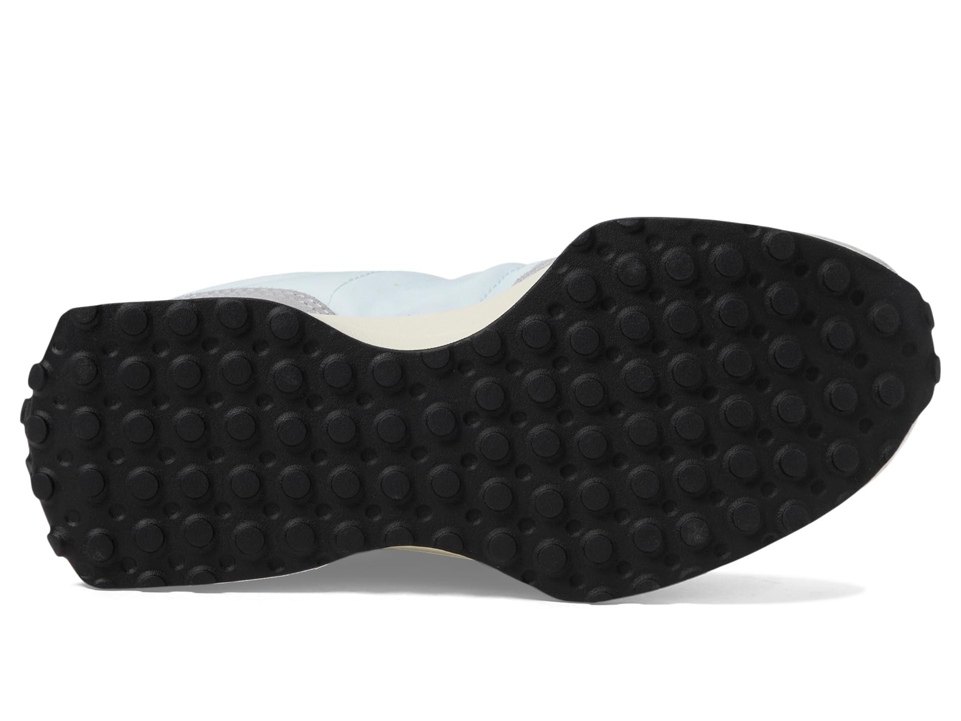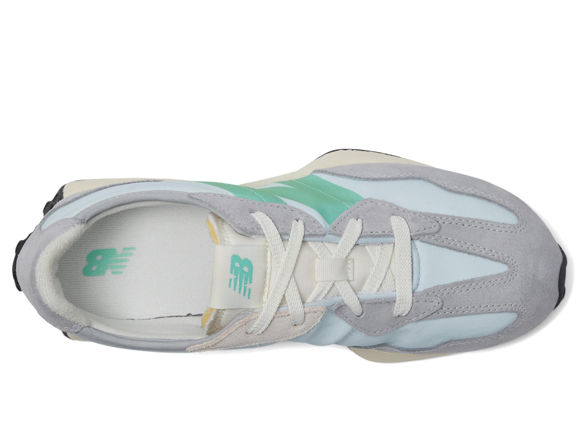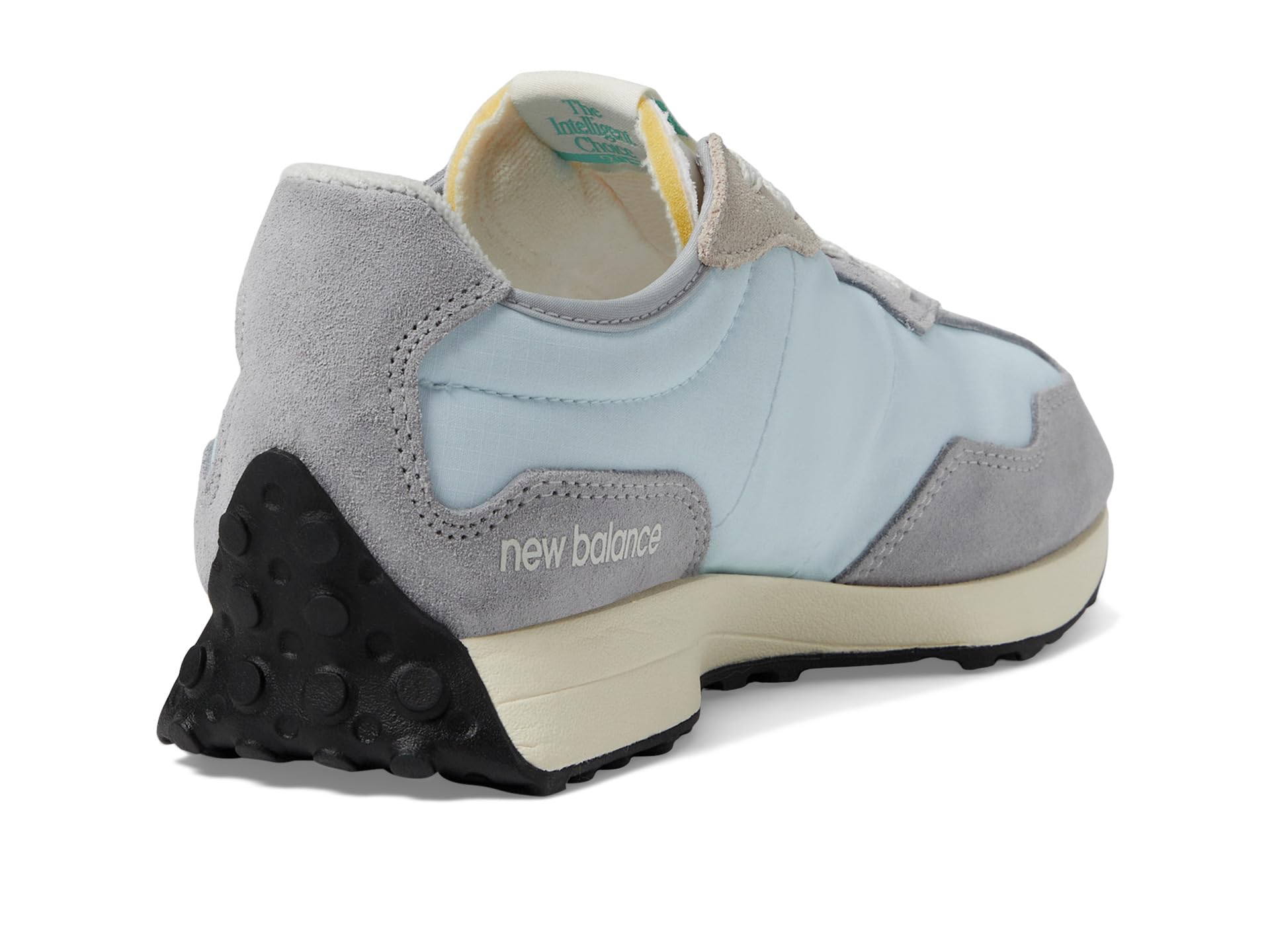 - The New Balance® Kids 327 Sneakers sheds new light on the ’70s as a time of innovation by boldly reshaping classic design elements with a thoroughly contemporary outlook. With an angular reworking of the tried-and-true wedge silhouette, outsize, asymmetrically applied oversized’N’ branding, split eyerow, flared midsole, and round toe silhouette, the 327 provides nothing less than a complete reimagination of our running heritage. The sneakers feature a suede upper with color-clock details & a lace-up closure.
