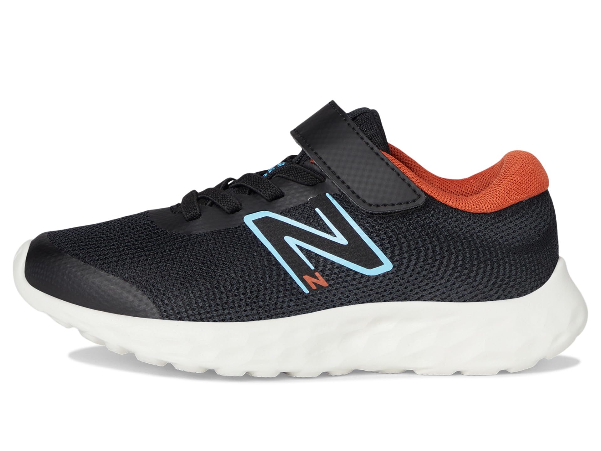 - Add comfort to your steps and exude style wearing New Balance® Kids 520v8 Bungee Lace Sneakers. The low-top running shoes are crafted with a mesh upper, fabric lining, and a cushioned cotton insole. The lace-up closure with the hook-and-loop strap ensures a secured fit and the New Balance® logo detail on the side panel adds an authentic touch to the look.