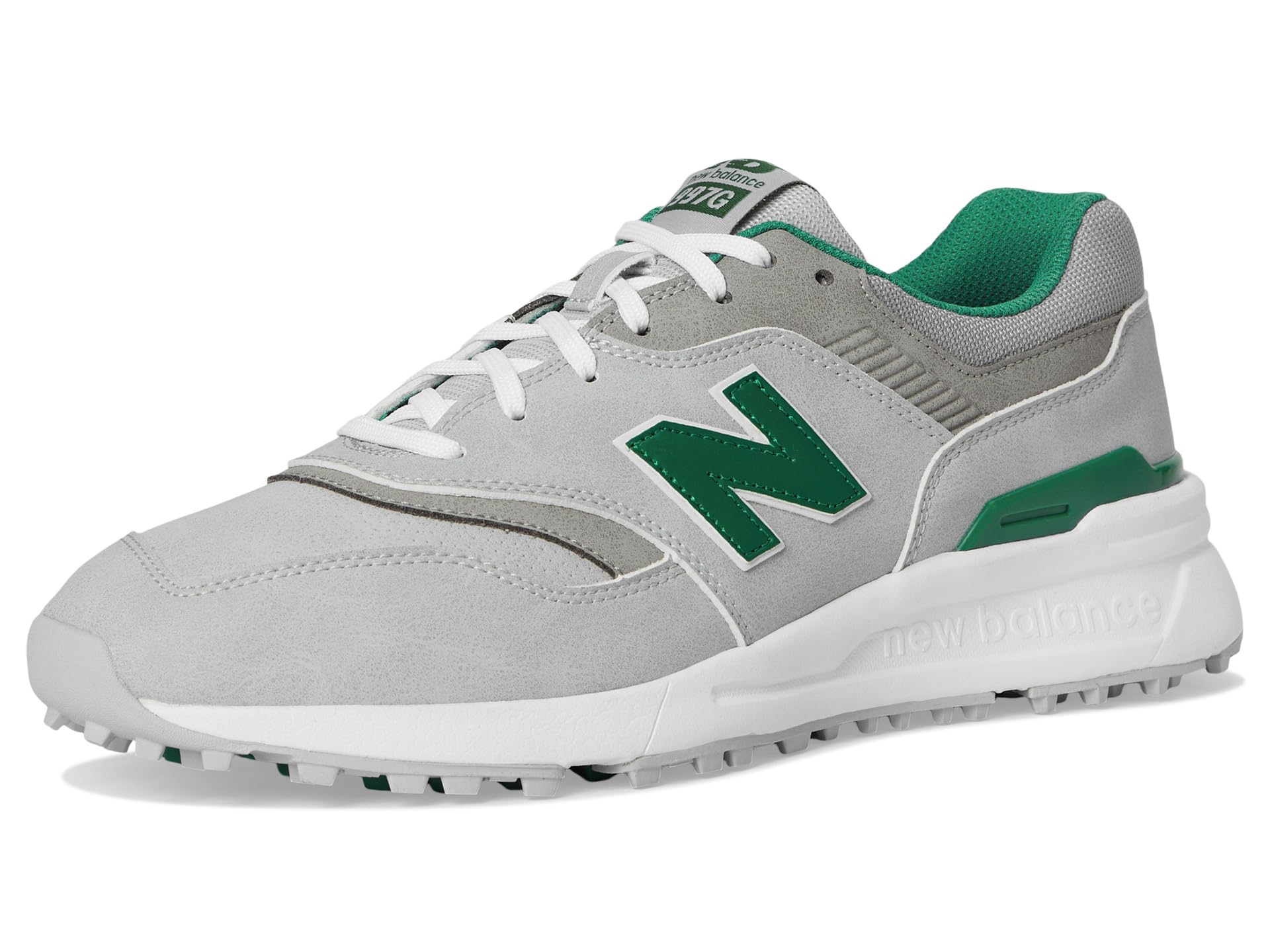 - Get ready to conquer the course wearing New Balance® Golf 997 SL. Featuring a sleek, waterproof microfiber leather upper, this golf shoe ensures your feet stay dry while delivering superior support and comfort. The Ndurance spikeless rubber outsole is engineered to move with the natural motion of your foot, offering exceptional traction and flexibility. Feel the difference with the Abzorb drop midsole, providing lightweight cushioning and premium responsiveness for every step. Plus, the Cush+ insole adds extra comfort, making sure your feet stay fresh through every round. With a lace-up closure for a snug fit, the New Balance Golf 997 SL is built for golfers who demand the perfect blend of performance, style, and durability.