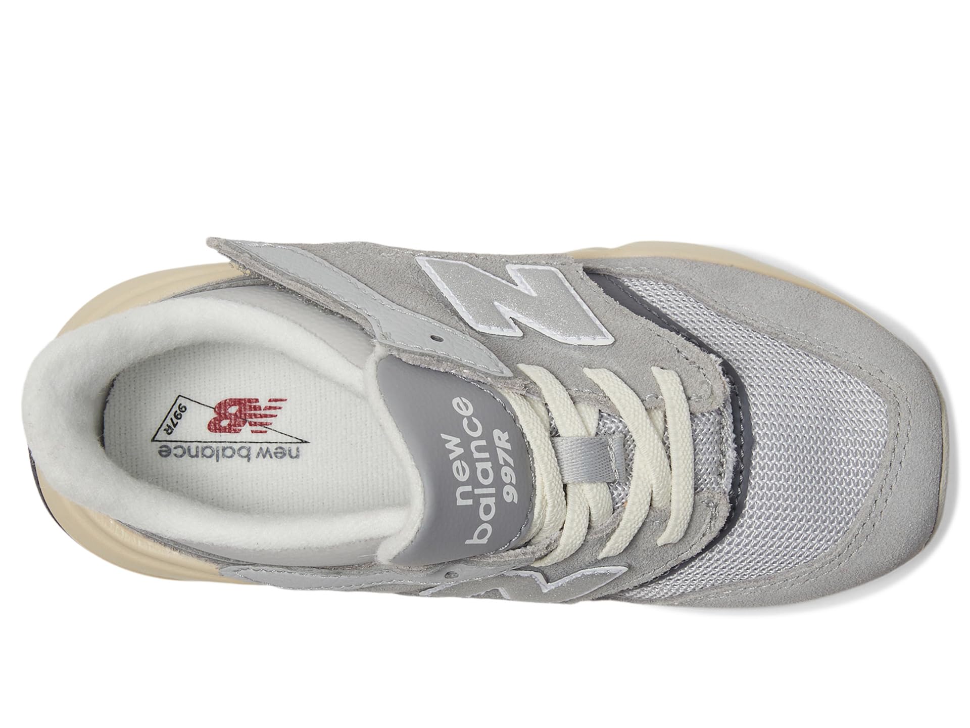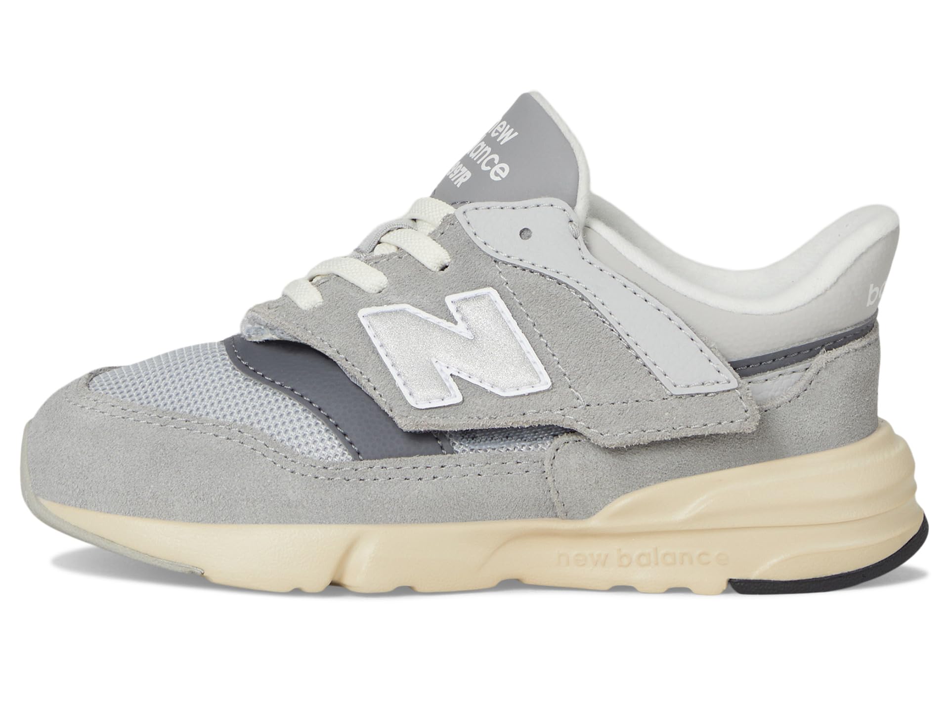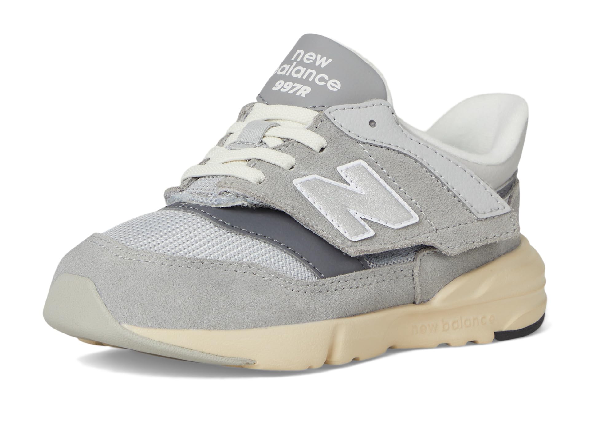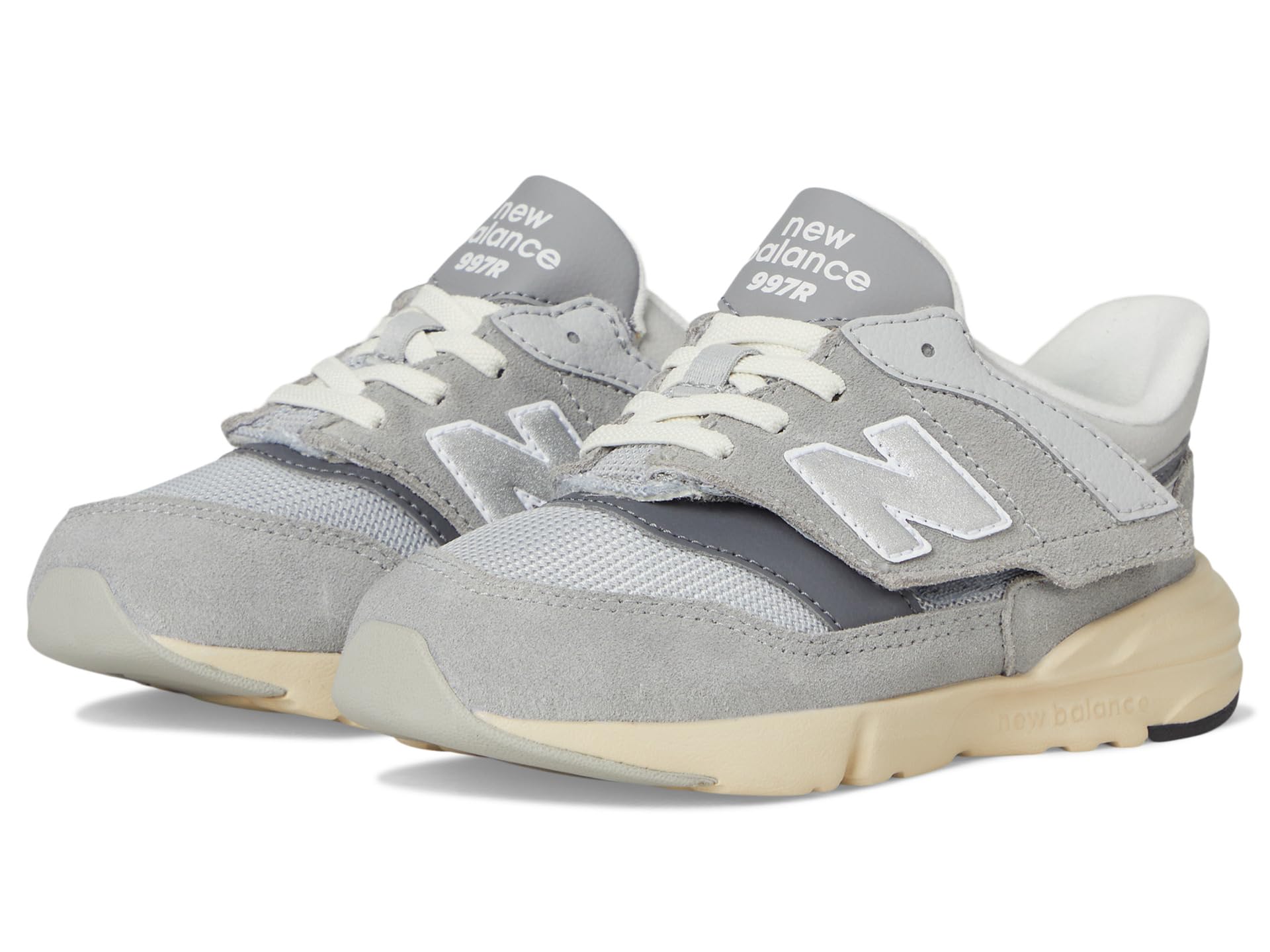 - Give your little ones’ feet absolute comfort wearing New Balance® Kids 997R New-B Hook & Loop Shoes. The round-toe shoes are crafted with a split suede or mesh upper, fabric lining, and a cushioned fabric insole. The hook-and-loop tab allows a secured fit on the go.