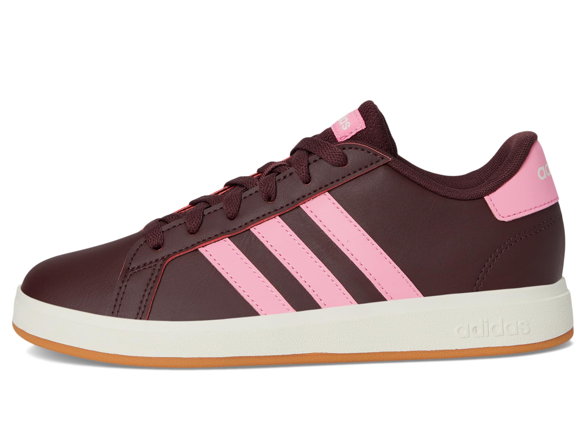 - Bring a retro vibe to your junior’s sporty attire while letting them enjoy exceptional comfort during their game day wearing the adidas® Kids Grand Court 2.0 Sneakers. Crafted from a synthetic leather upper, these shoes offer a traditional lace-up closure in a round toe silhouette, padded tongue and collar for added support, and a cushioned textile insole for lasting comfort.