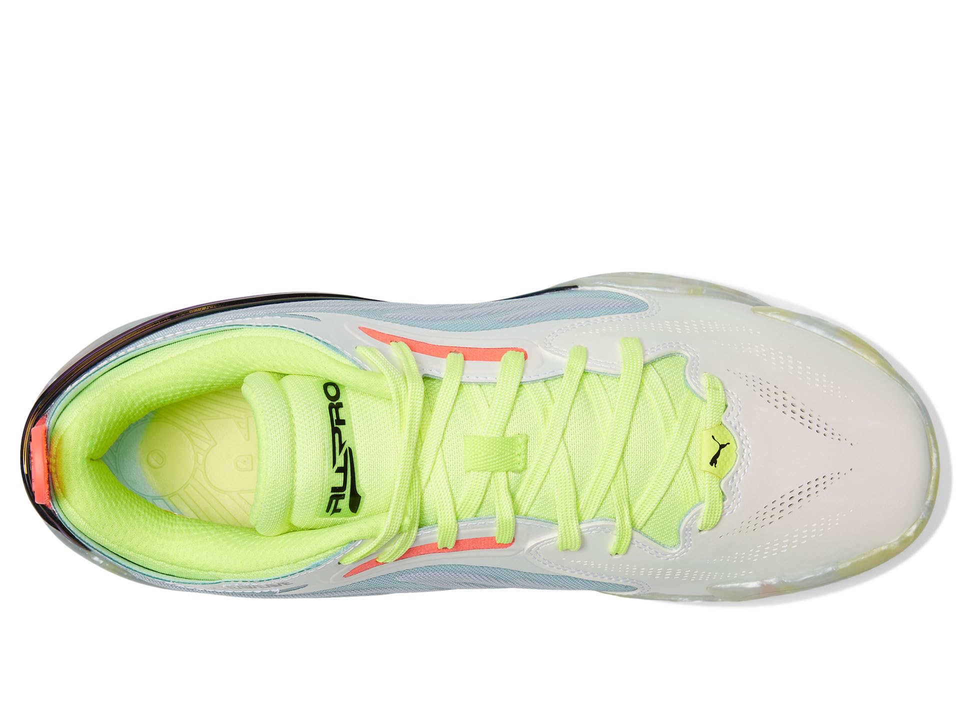 - Dominate the court sporting the PUMA® All-Pro NITRO Elite, engineered for unstoppable speed, precision, and power. The NITRO SQD foam blends plush cushioning with a firm outer layer for explosive multi-directional movement. The UltraWeave EVA upper-crafted with lightweight woven materials-delivers targeted support, superior breathability, and a locked-in feel. Stay in control with PUMA GRIP, featuring a high-abrasion tread pattern and non-slip rubber outsole for maximum traction. An electroplated TPU heel counter ensures lateral stability, while the Carbon fiber PWRPLATE shank enhances torsional rigidity and energy return. Lace-up and experience the ultimate fusion of speed, agility, and performance!