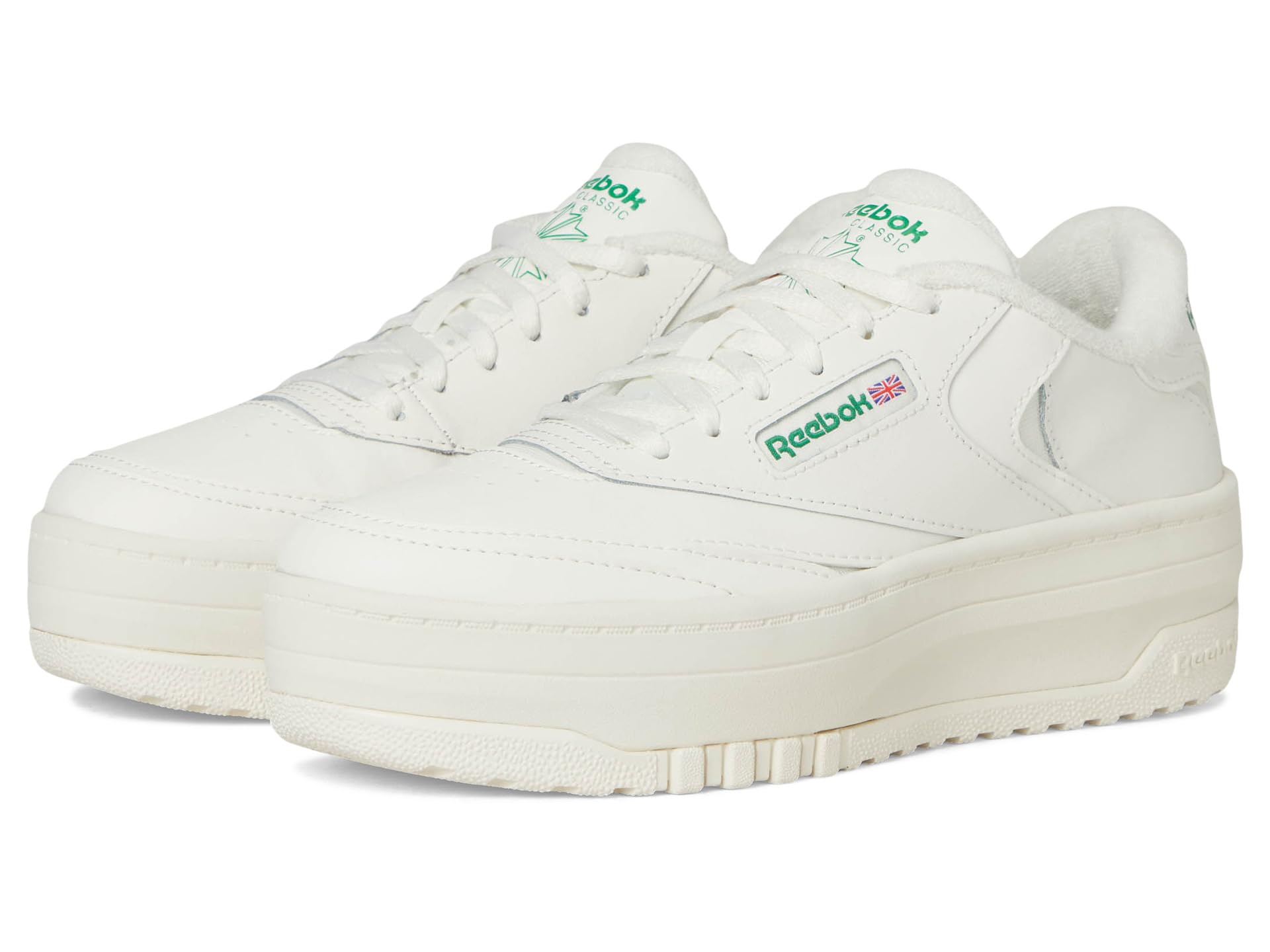 - Bring total comfort to your little one’s feet with the Reebok® Kids Club C Extra Shoes. A high platform heel lends this lace-up footwear a chunky yet classic look.