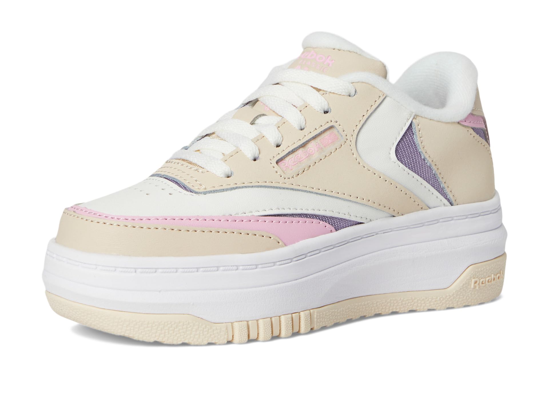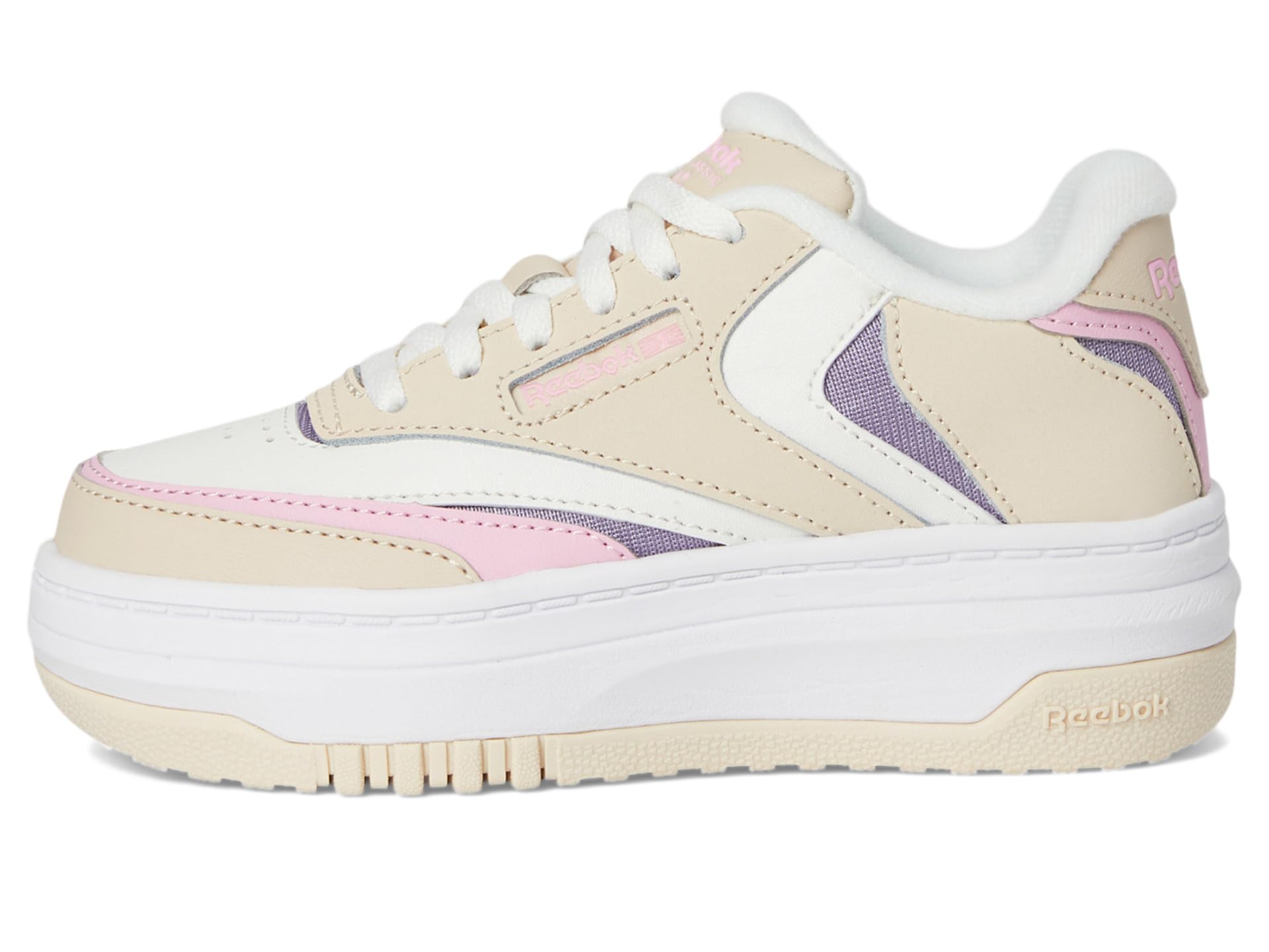- Style up your looks and outfits wearing the Reebok® Kids Club C Extra shoes. The rubber upper of these sneakers features a lace-up closure for a comfortable fit. The rubber insole and leather lining offer added comfort. Their iconic Reebok design with a mid-level platform offers some added height and style.