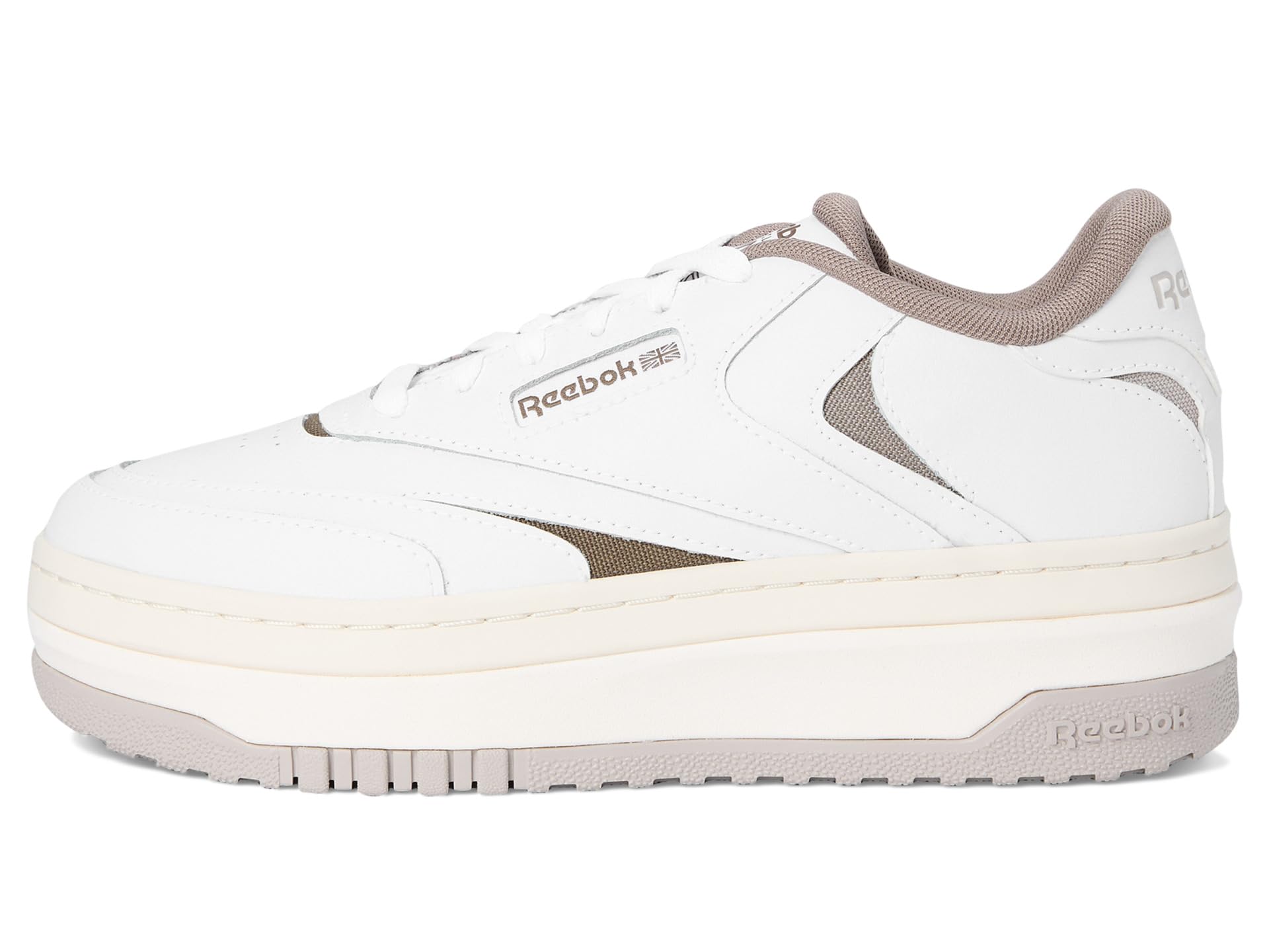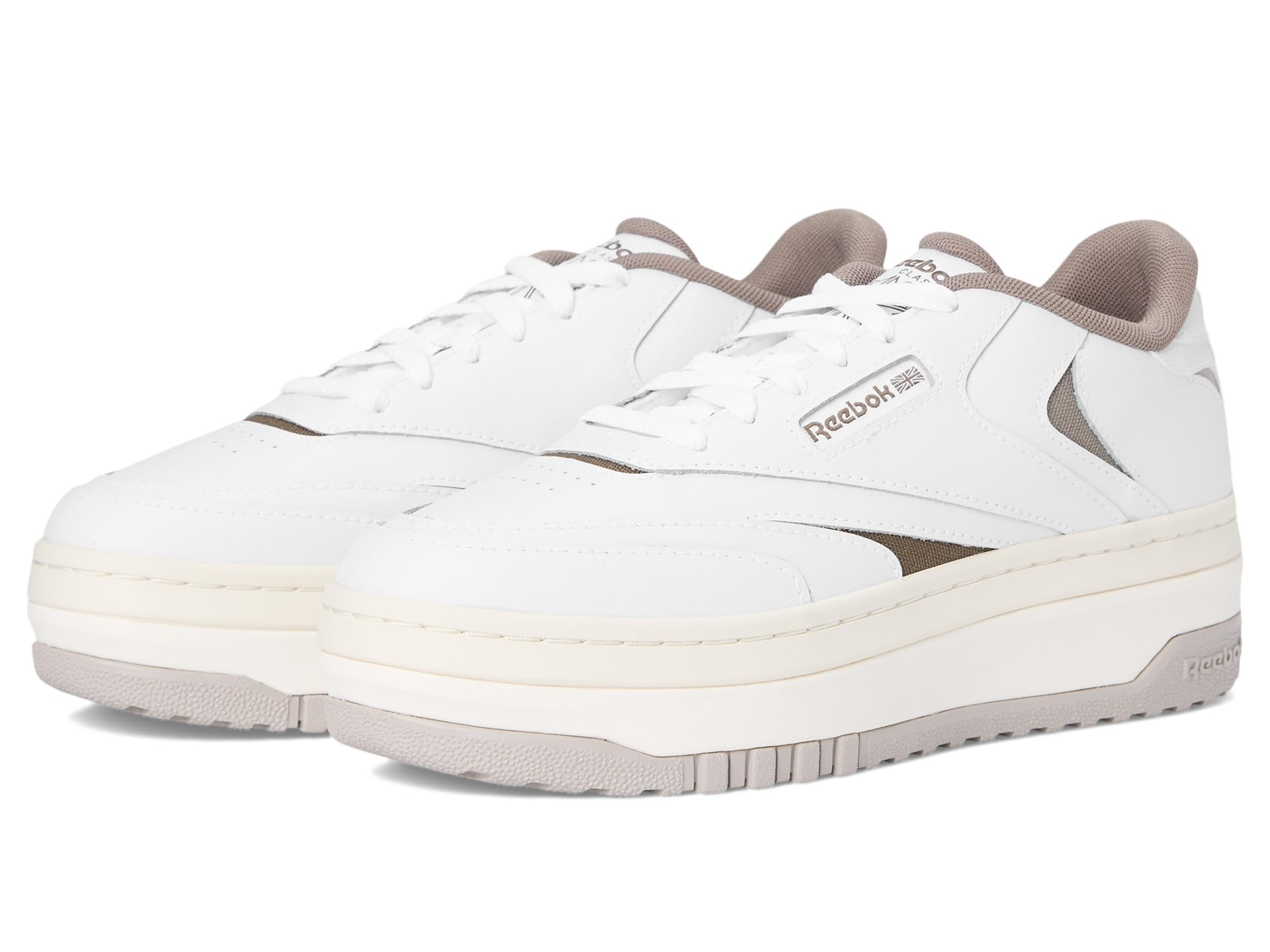 - The Reebok® Lifestyle Club C Extra sneakers feature primarily leather upper with small suede underlays and hints of textile in the micro pops, giving them a unique and stylish look. With a leather lining and rubber insole, these sneakers are not only fashionable but comfortable too. The lace-up closure ensures a secure fit, while the exaggerated platform midsole adds a touch of flair to your outfit. Gradient effect used on the micro pops (color shades move from dark to light from front to back of shoe).