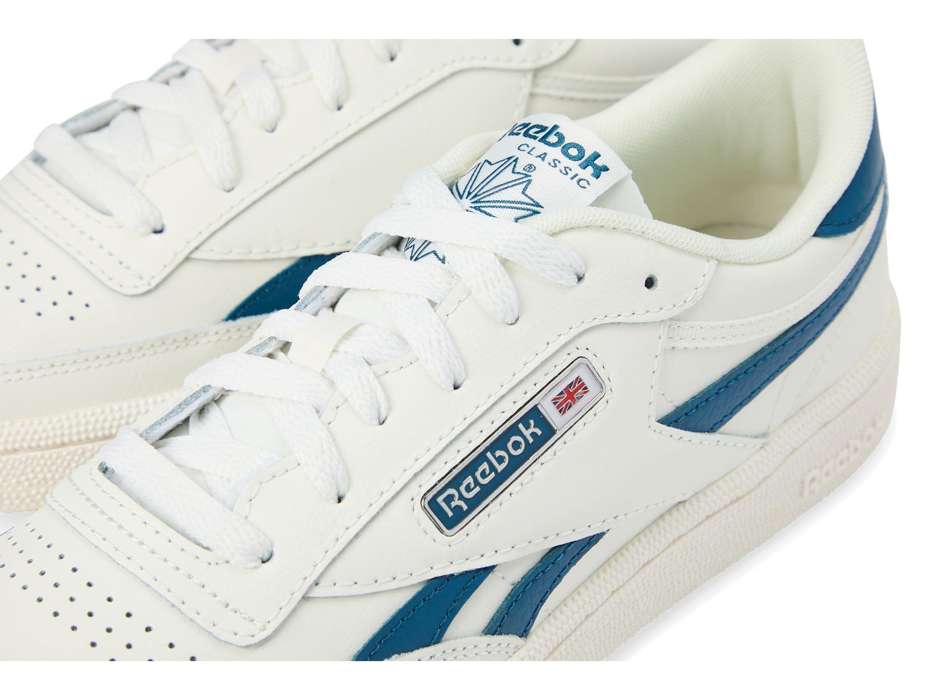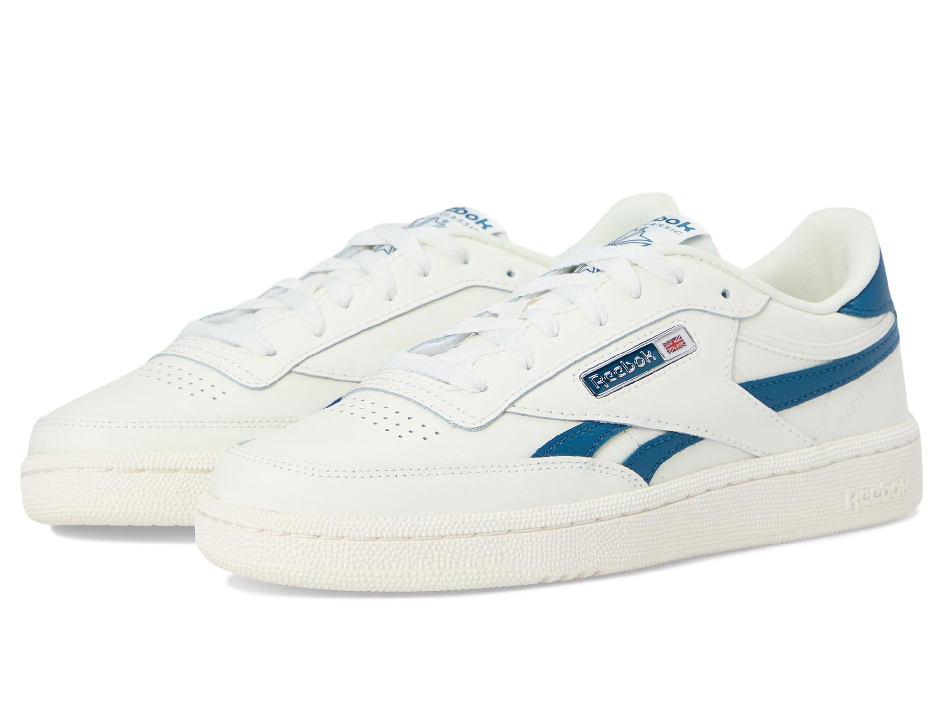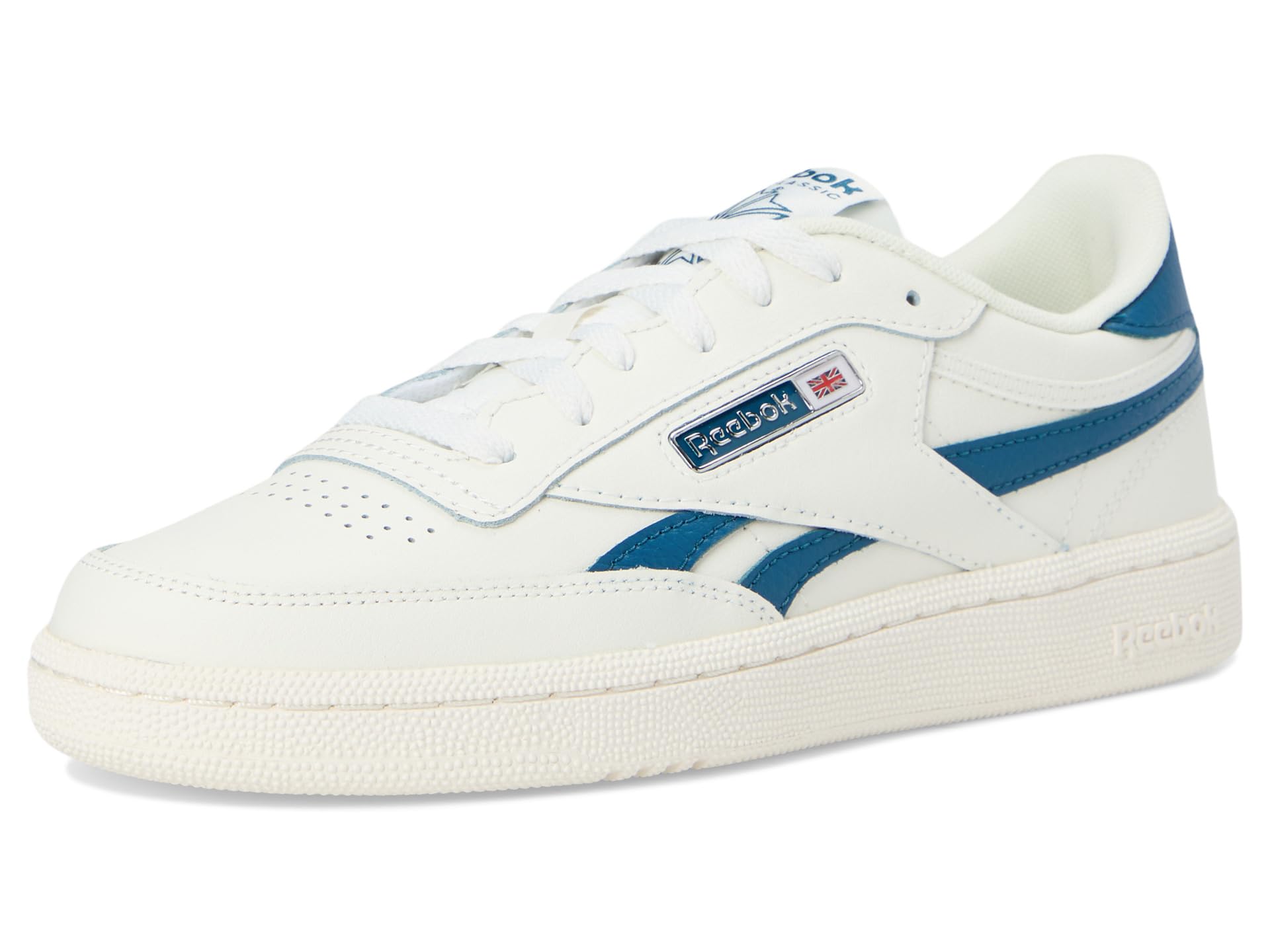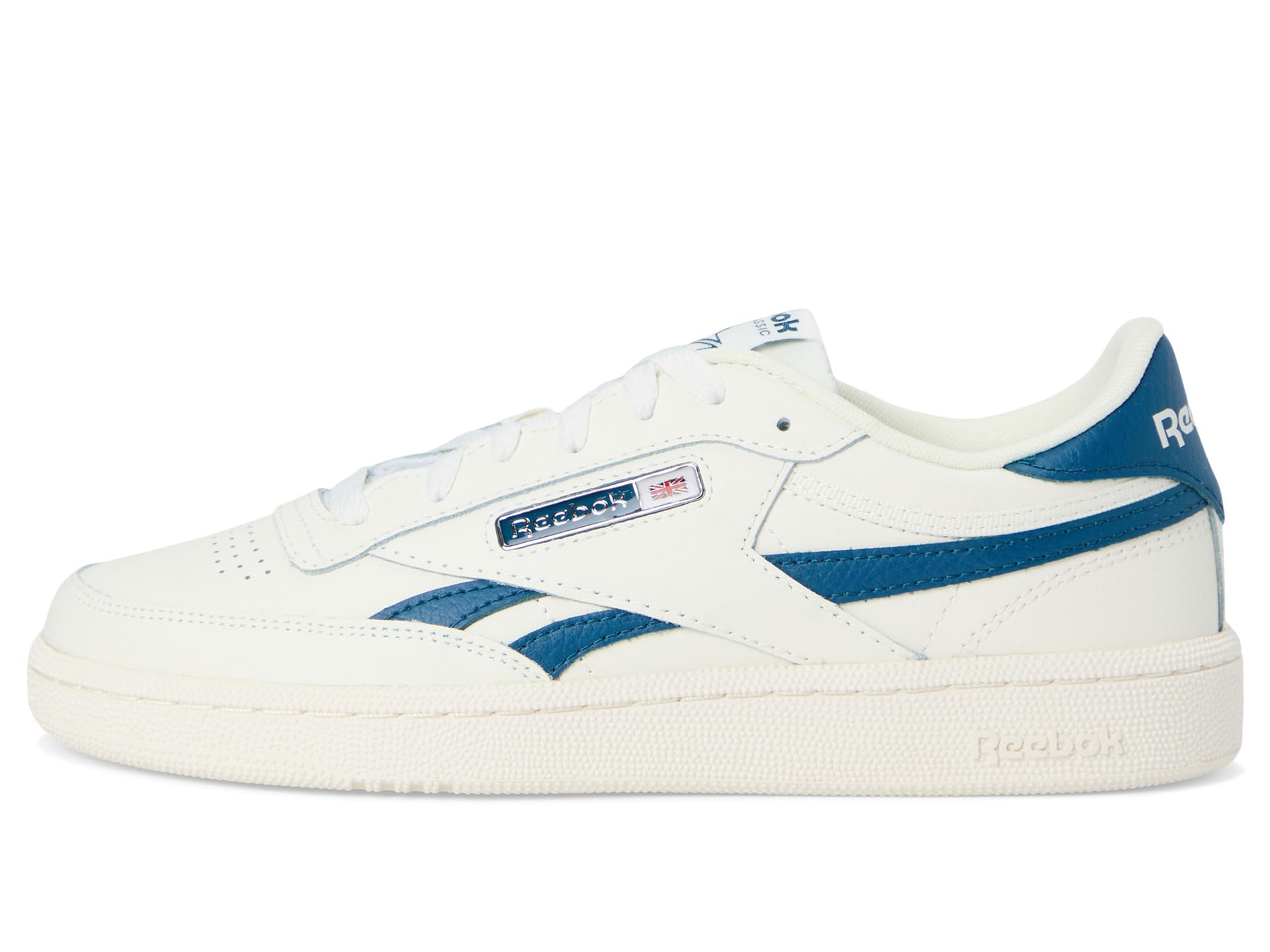- Slight off-colored collar binding for added “sun baked” aesthetic, the Reebok® Lifestyle Club C Revenge looks classy. Crafted from leather upper, lining, and rubber insole, this pair of shoes features round toe, lace-up closure, iced cup sole bottom, and brand detailing on the sides, tingue and footbed.