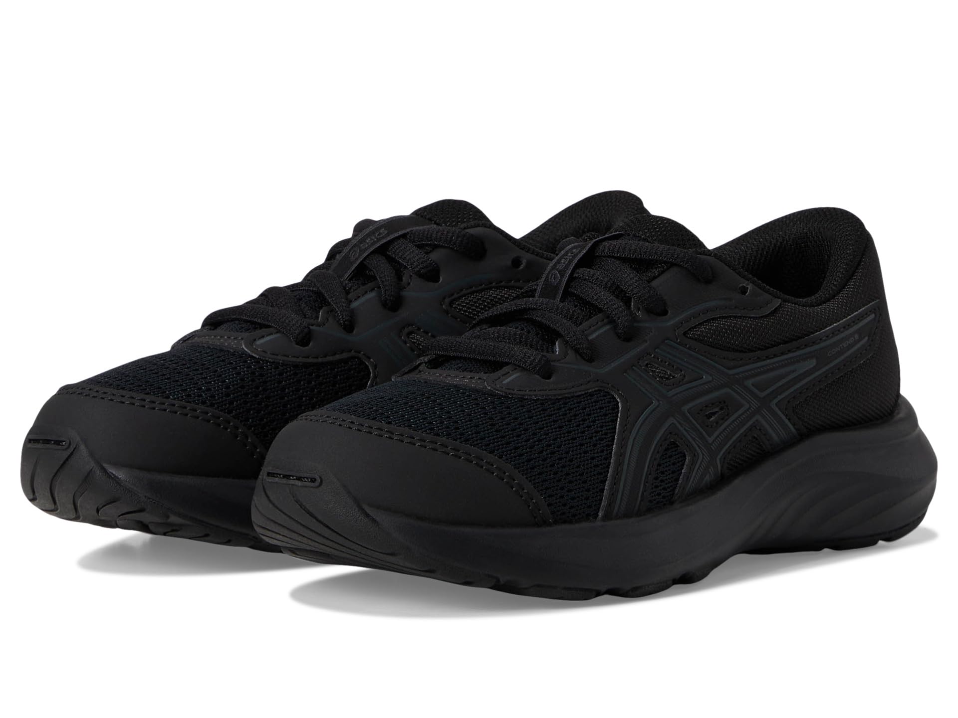 - The ASICS® Kids Contend 9 GS shoes are designed for young feet. Details like the toecap, toe rubber stitching, and solid rubber outsole increase durability and lengthen the shoe’s lifespan. Additionally, the CUB MATCH™ sockliner is printed with a Tiger®caricature that helps kids identify the right and left shoe. The polyester upper features traditional laces and stitched rubber and overlays for improved durability. These lace-up sneakers are made of an EVA insole and polyester lining.