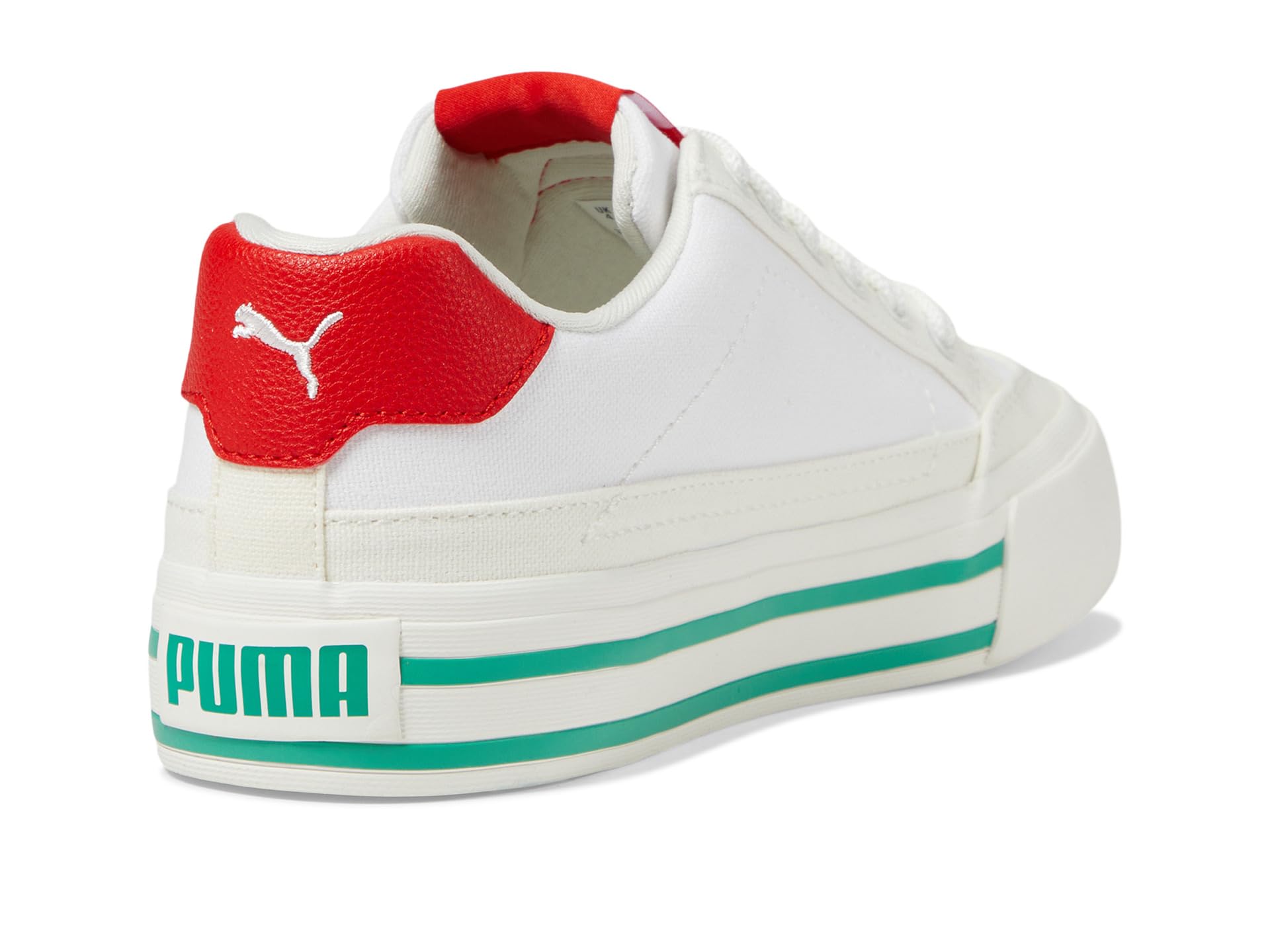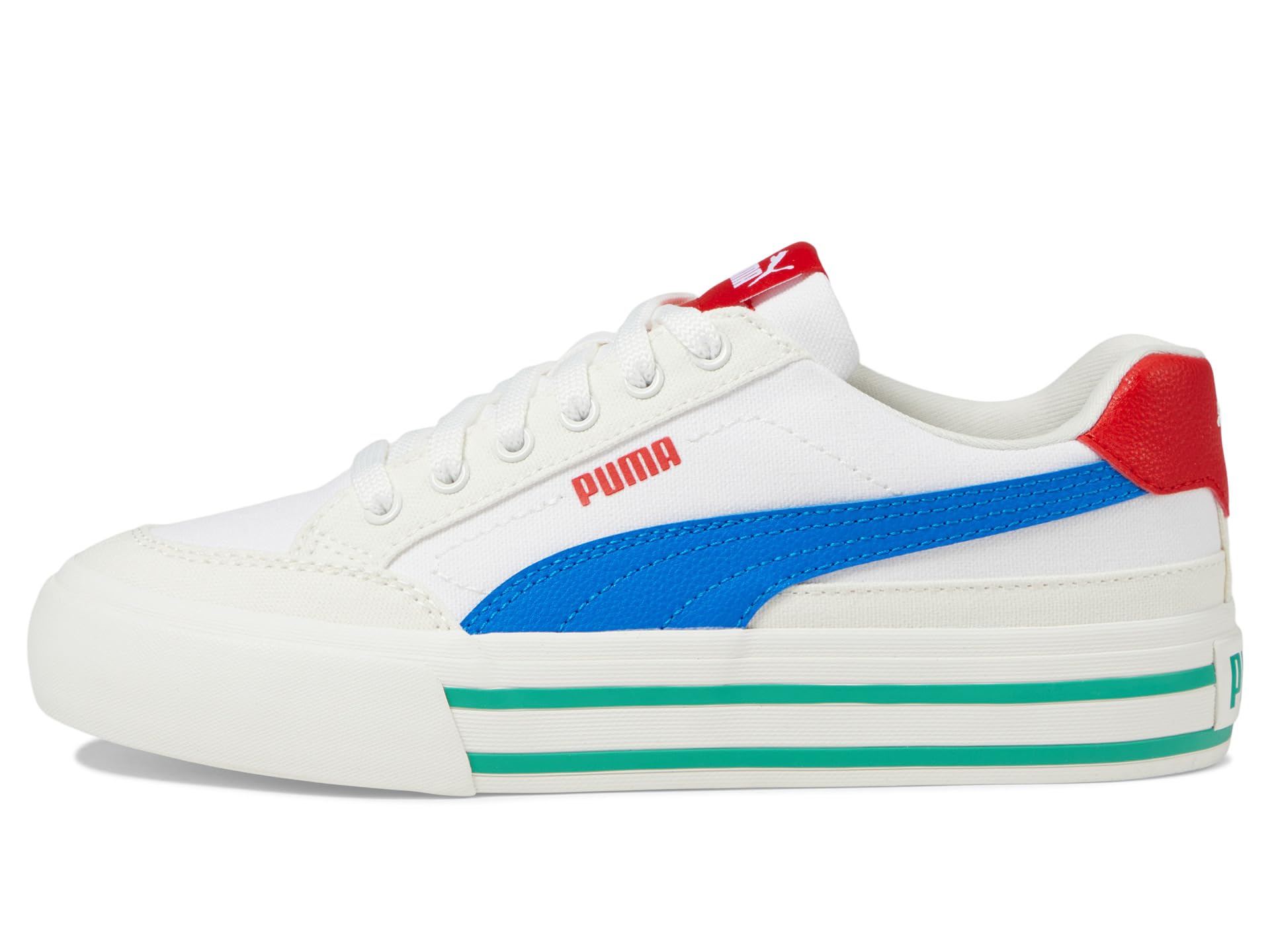 - A versatile and comfortable pick for your young athlete, the PUMA® Kids Court Classic Vulc Sneakers feature a court-inspired sporty profile combined with a low-boot style. These trainers are constructed with a durable leather upper coordinated with a breathable polyester lining, a soft foam-cushioned insole, and a vulcanized rubber outsole. The synthetic formstrip with branding on the side and the screen-printed cat logo on the heel and the tongue lend a signature touch and athletic appeal to these shoes.