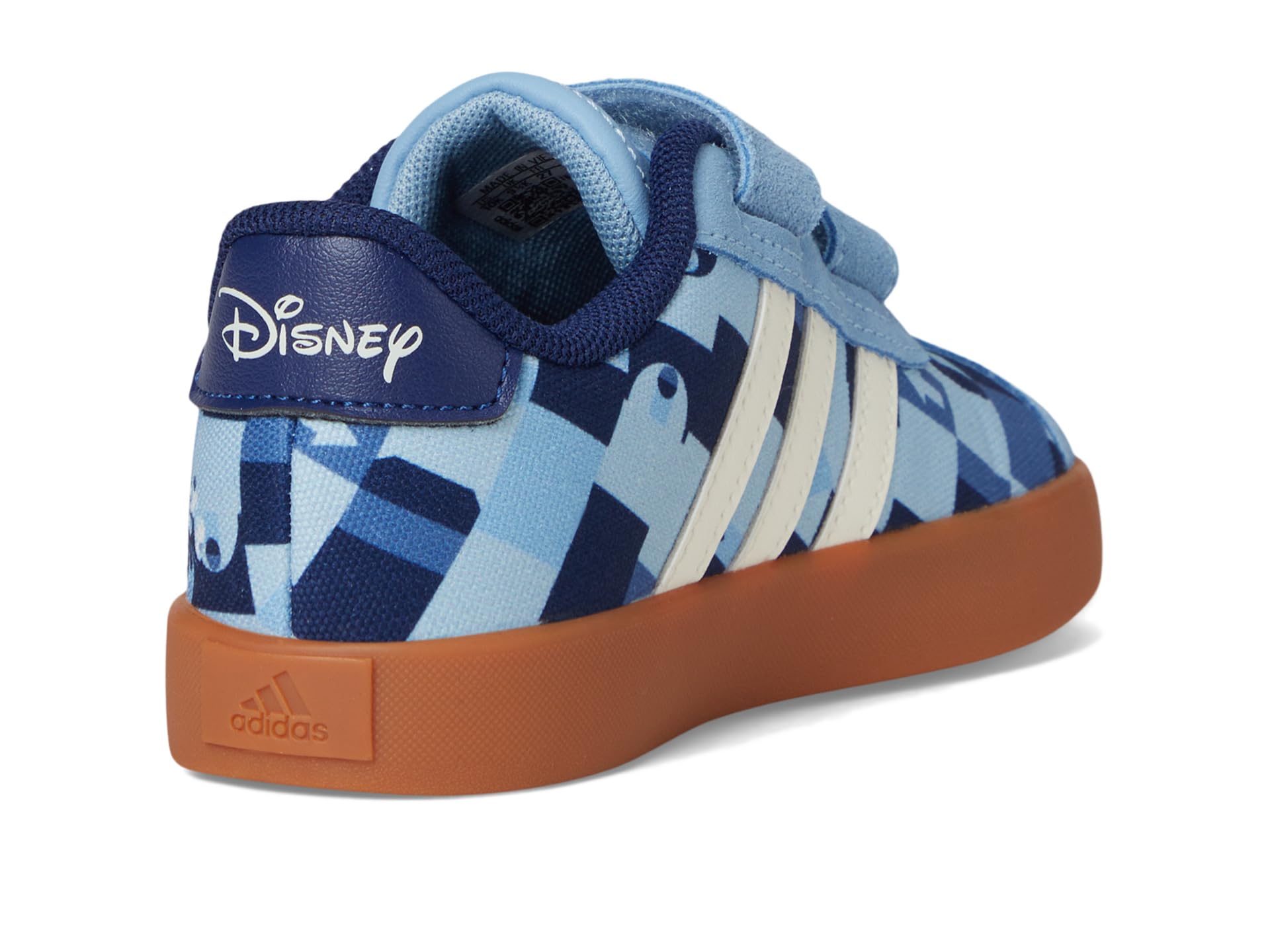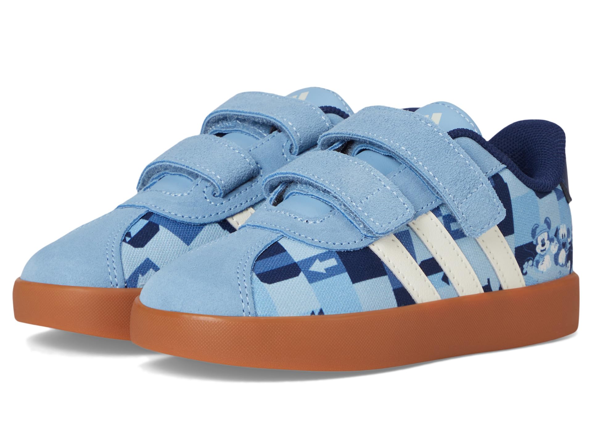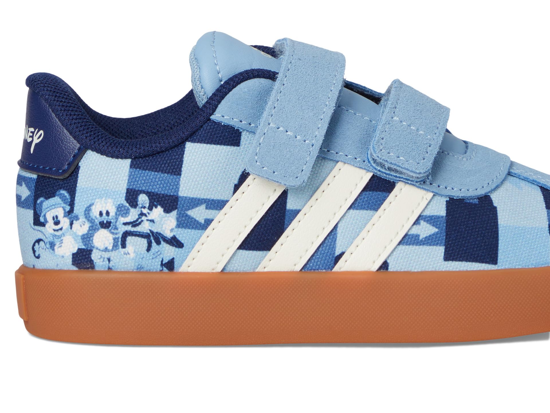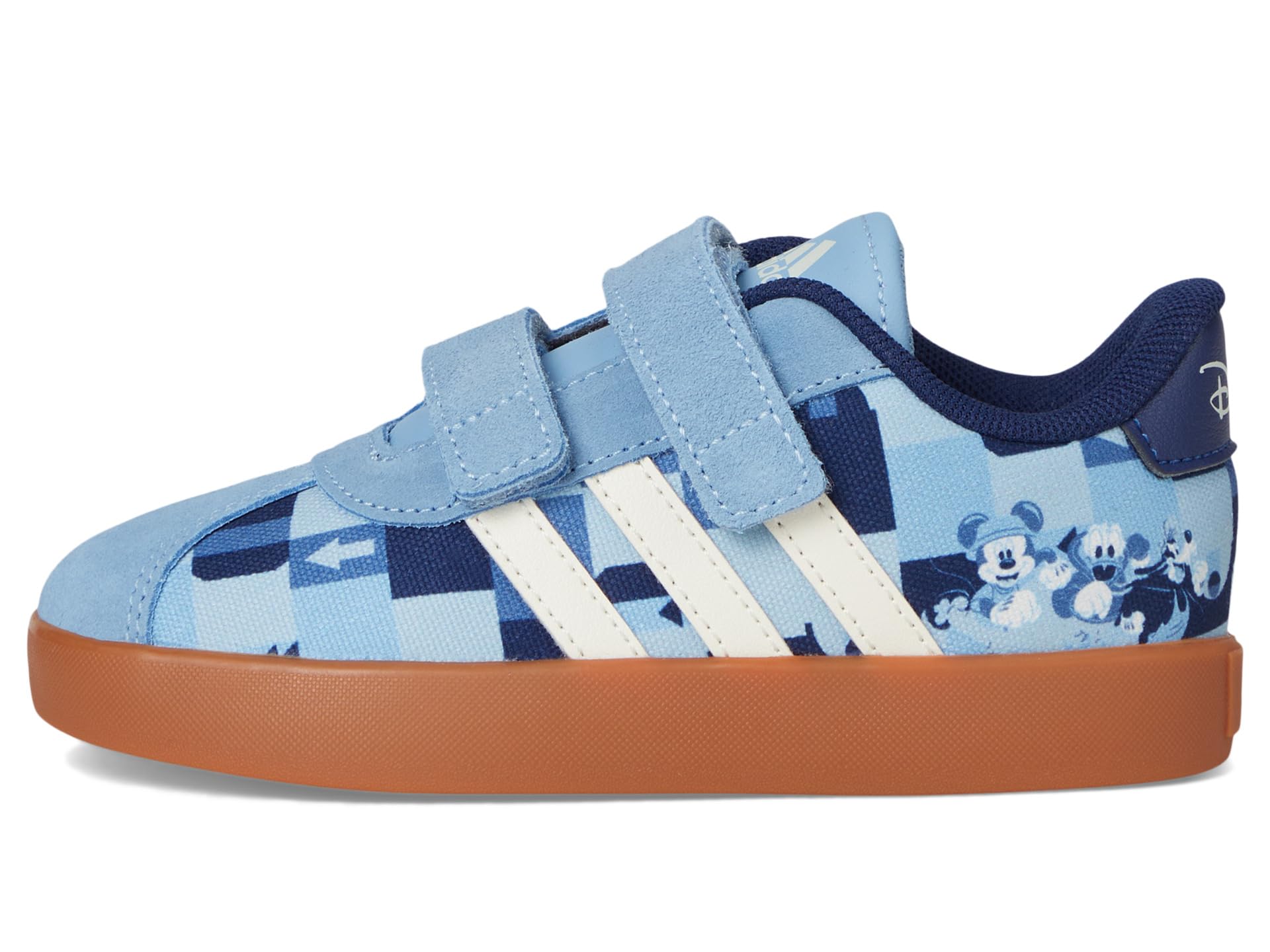 - They’ll go leaps and bounds on the playground in the adidas® Kids Disney Mickey Mouse VL Court Sportswear Shoes. Featuring a dual hook-and-loop strap closure for an easy fit in a round toe silhouette, suede and synthetic upper, rubber lining and insole, and graphic print on upper.