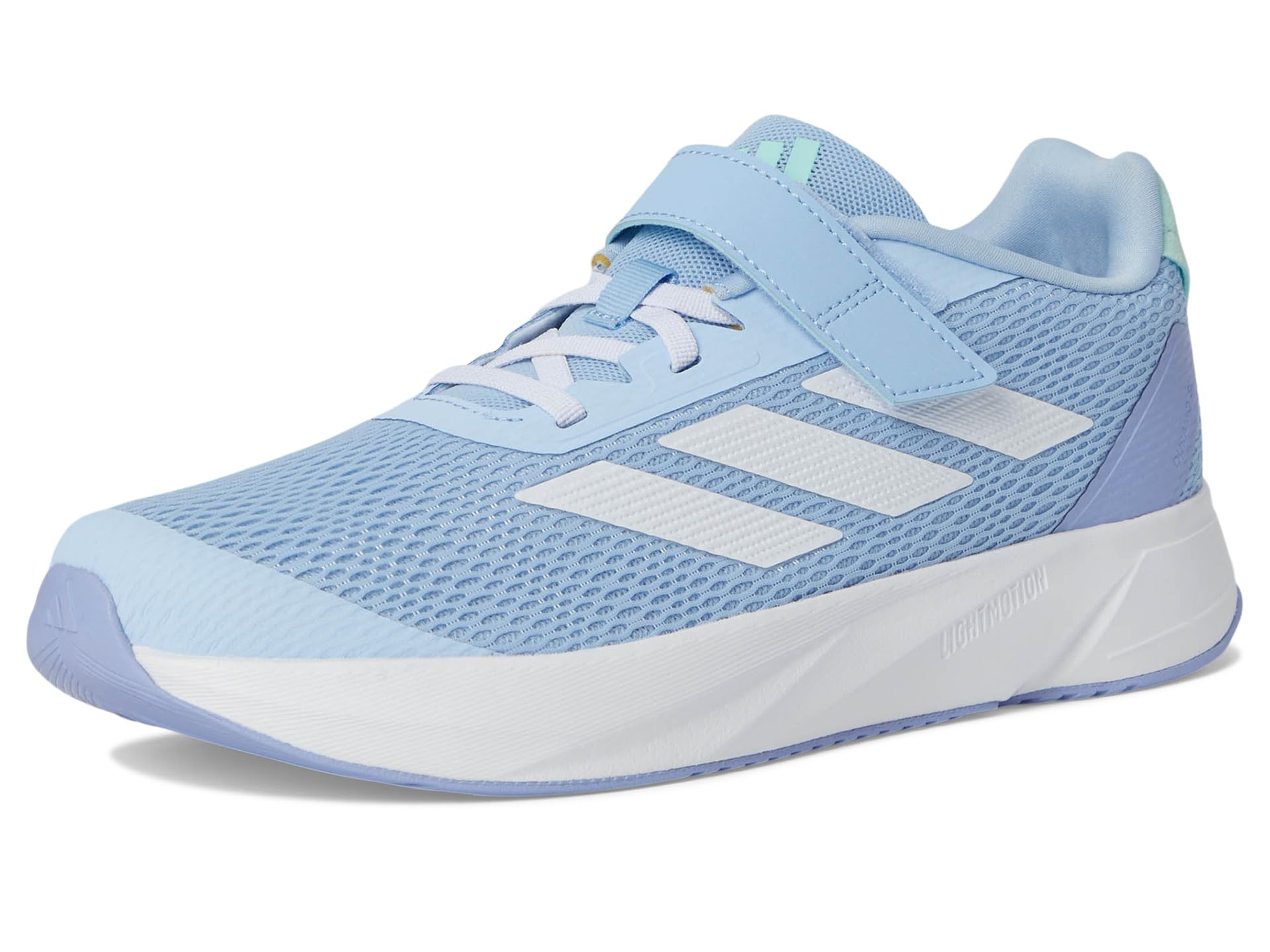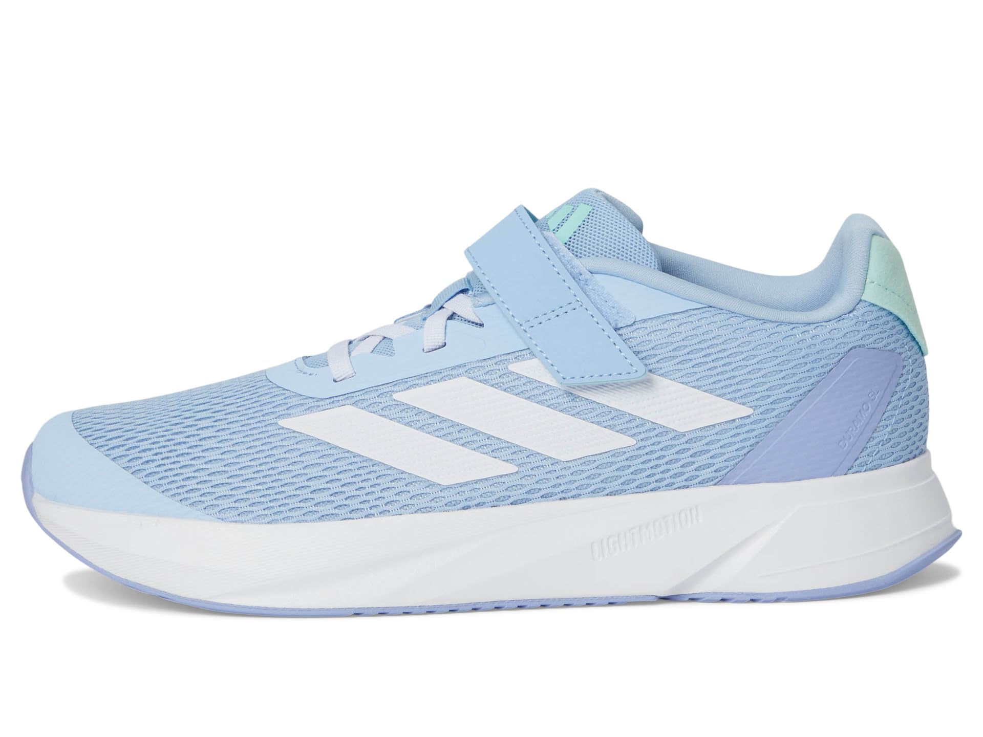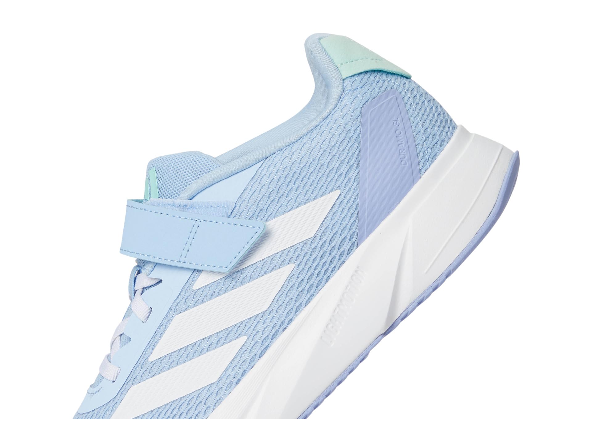 - Step up the style and comfort wearing adidas® Kids Duramo Sl Shoes, designed with contrasting three-stripe branding and round toe silhouette. The sneakers feature faux leather upper, synthetic rubber lining, and cushioned insole. The lace-up closure and hook-and-loop tab allows easy adjustability.