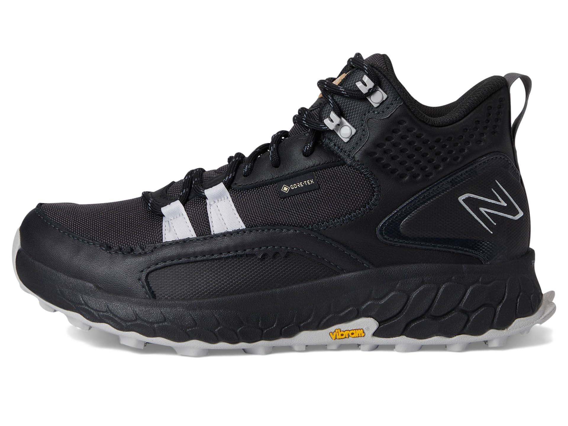 - For those who choose to take expressions off the beaten path and blaze your own trail literally, there’s the New Balance® Fresh Foam X Hierro Mid v1 shoes. The combination of signature performance technology and rugged durability takes the idea of more miles, and more comfort off-road. These men’s running shoes employ a Vibram® Megagrip outsole and toe protection to create a protective shell of durability and traction around the signature Fresh Foam X cushioning and mid-cut mesh upper with rugged synthetic materials. These trail running shoes are made of an EVA insole and cotton lining. The Fresh Foam X midsole foam with approximately 3% bio-based content delivers the most cushioned Fresh Foam experience for incredible comfort. Their Toe Protect technology helps protect your feet from rocks, roots, and trail debris.