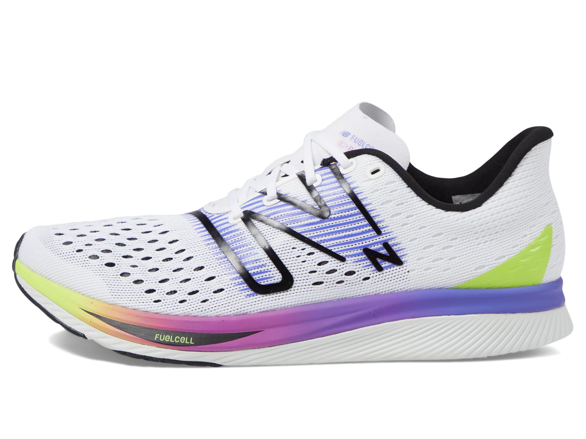 - Designed for 5k to half-marathon distances, our FuelCell SuperComp Pacer contains Energy Arc technology, a carbon fiber plate and a double-layer springy FuelCell midsole to help propel your strides forward. These racing flats also feature a single-layer engineered mesh upper for breathability and a lightweight feel. The sleek design offers runners a lower stack height racing solution and a snappy ground feel.