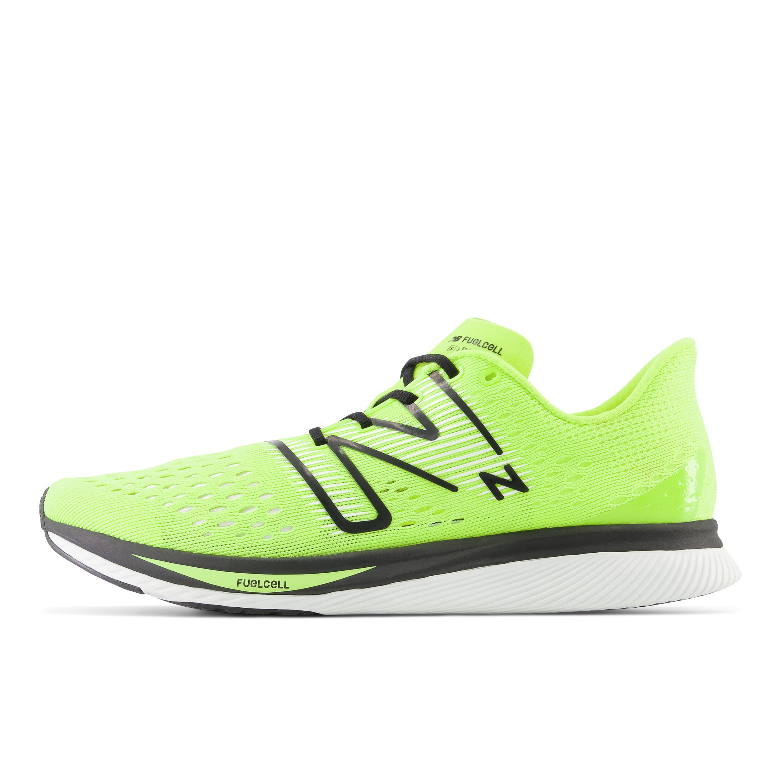 - Designed for 5k to half-marathon distances, our FuelCell SuperComp Pacer contains Energy Arc technology, a carbon fiber plate and a double-layer springy FuelCell midsole to help propel your strides forward. These racing flats also feature a single-layer engineered mesh upper for breathability and a lightweight feel. The sleek design offers runners a lower stack height racing solution and a snappy ground feel.