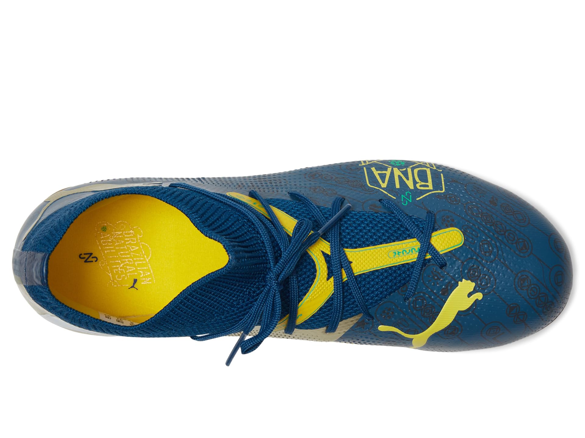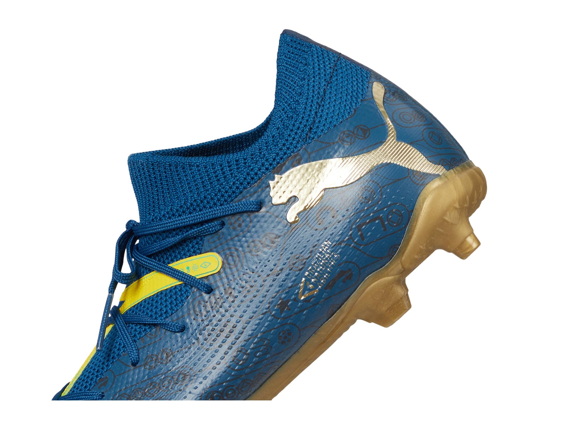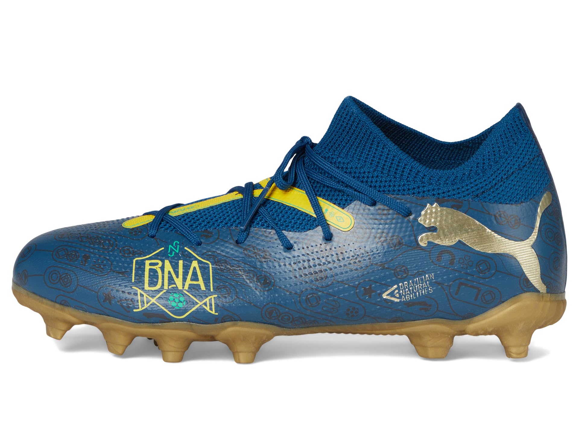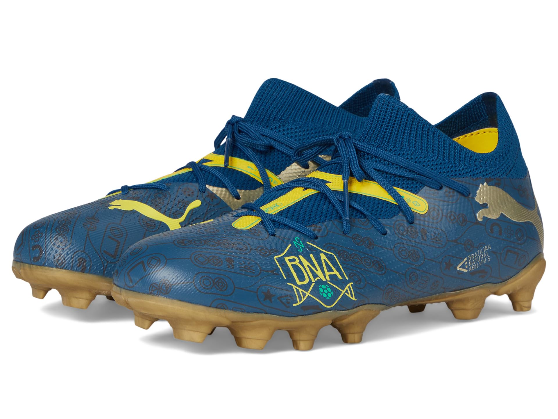 - Every time a certain Brazilian engages with the ball, something truly special happens. It’s a combination of skill, sense, and the ability of natural showmen – all honed-on street pitches and beaches across Brazil. The PUMA® Kids Future Match Neymar Jr. shoes celebrate Brazilian playmakers with colors and graphics inspired by the great footballing nation. Their soft EVA FUZIONFIT upper combines a lightweight yet durable synthetic and a stretchy collar for a supportive fit, so your kid can create without constraints throughout the 90 minutes. These lace-up shoes are made of rubber insole and polyester lining and feature supportive tape across the midfoot for pro-level lockdown and stability. The embossed details at the key ball contact zones offer enhanced touch and control. Lightweight and designed with a stretchy knit for a flexible, supportive fit, these football cleats will make sure that your kid shines on the field and performs his best.