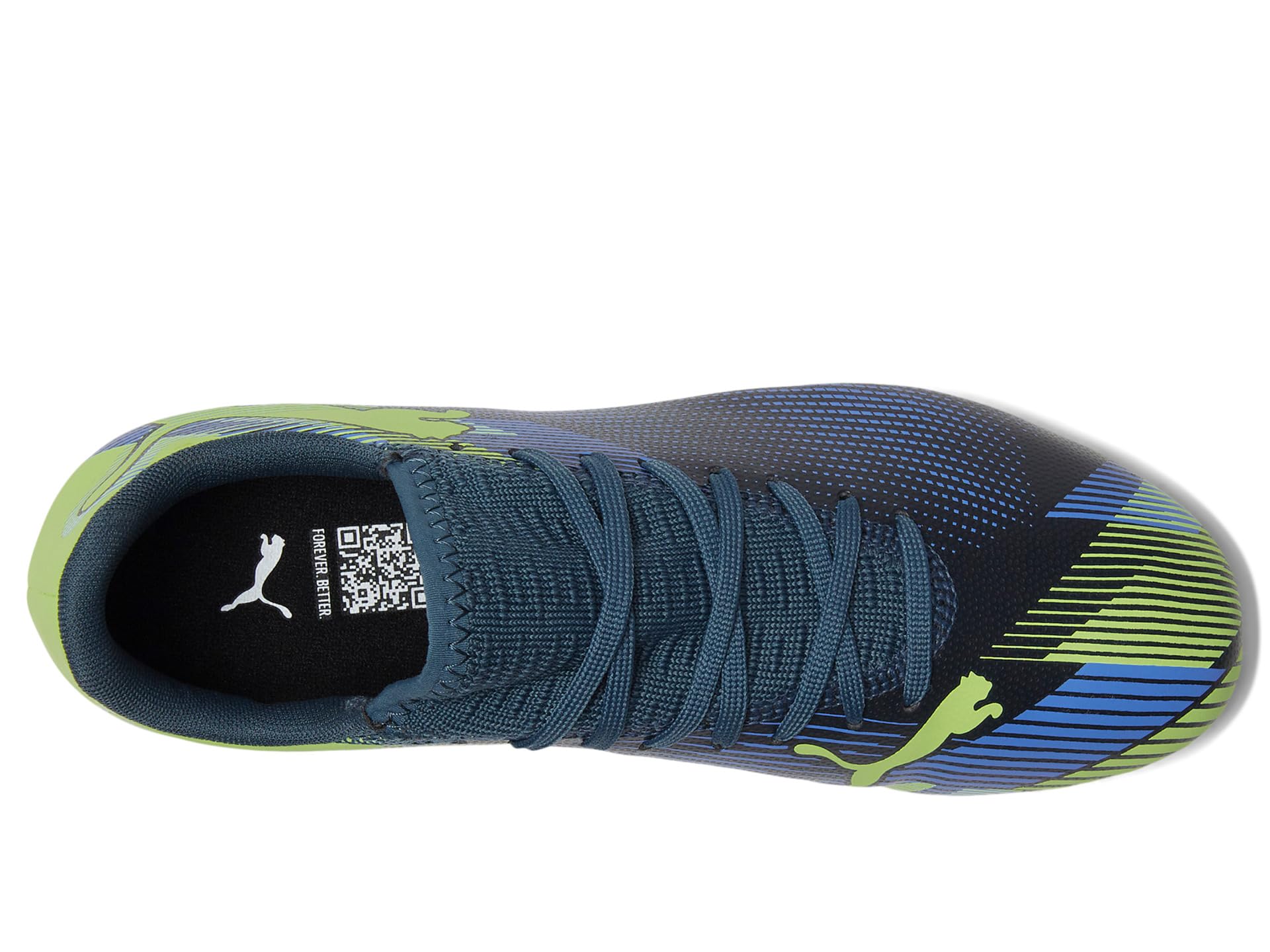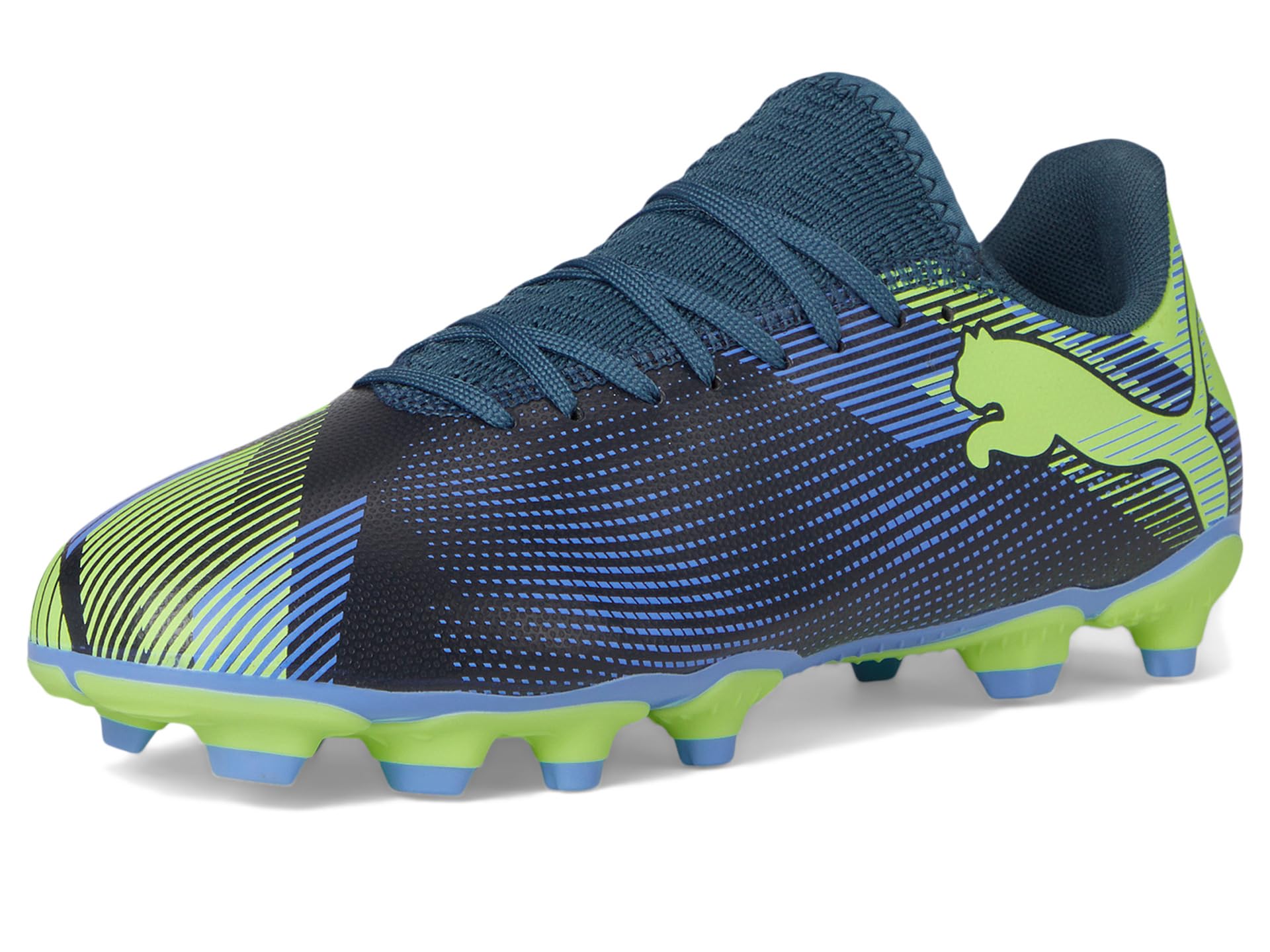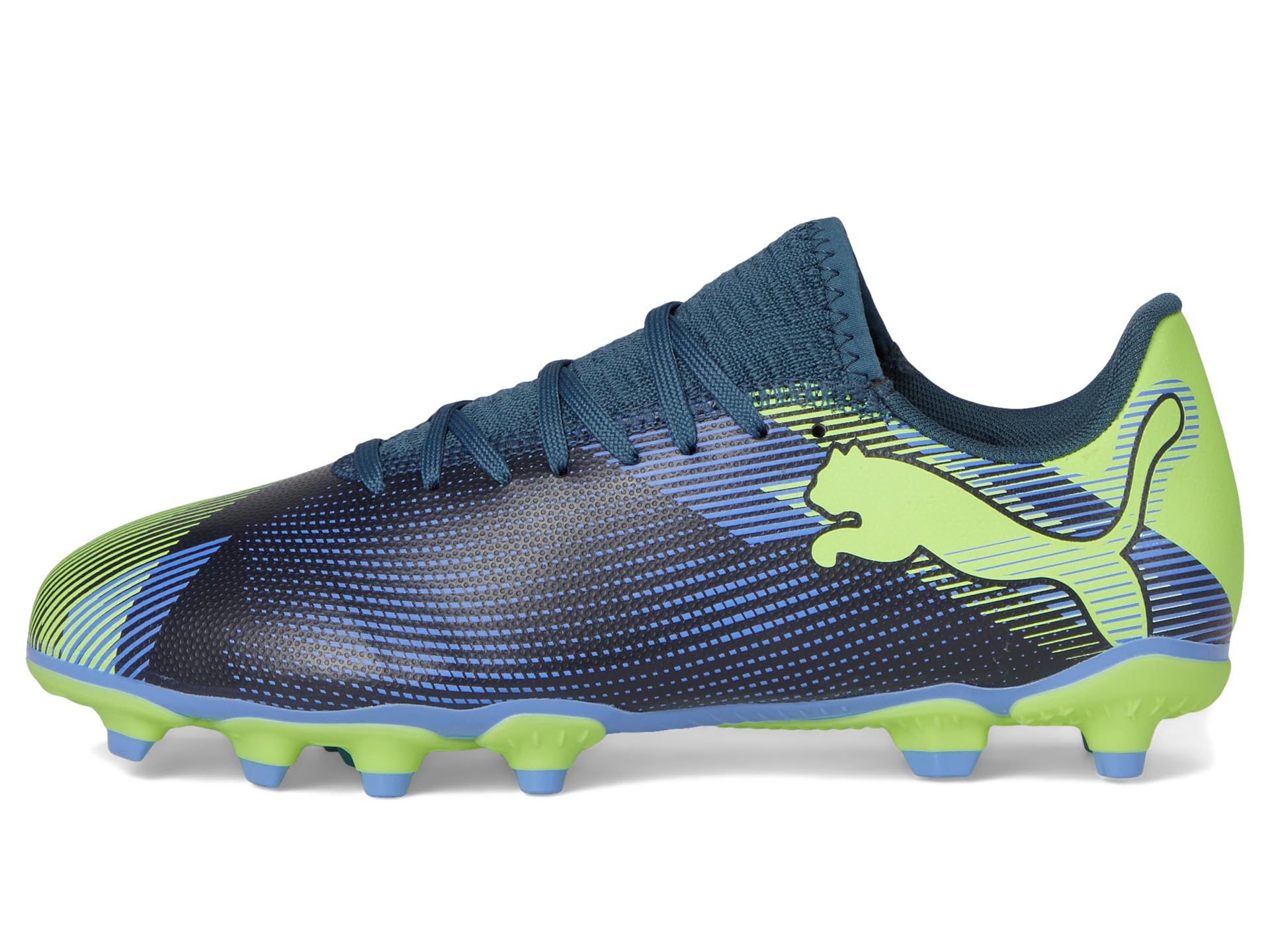 - Deliver an impressive performance every time you step into the ground wearing PUMA® Kids Future Play Firm Artificial Ground Shoes. The low-top shoes come with a soft upper that combines a lightweight yet durable synthetic material, a polyester lining, and a rubber insole for all-day comfort. While the knitted collar construction ensures a supportive fit, the texturized print details at key contact zones allow for enhanced ball grip. The round-toe shoes are designed with a lace-up closure for a secure fit and feature the signature Puma® leopard cat logo on the vamp and heel counter for brand authenticity.