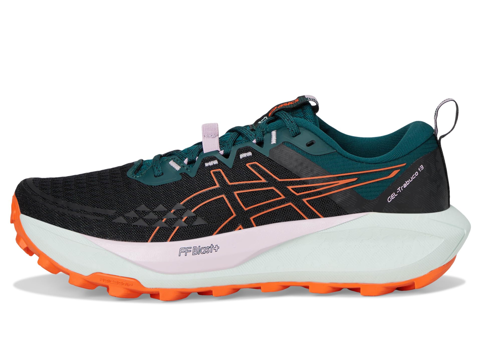 - The ASICS® GEL-Trabuco 13 shoe is a comfortable design for exploring the trails. A lightweight and energetic cushioning technology is strategically positioned in the midsole, creating a soft feel with advanced impact absorption underfoot. Its rock protection plate features a flexible construction that shields your feet from sharp rocks and rugged terrain. The outsole is formed with a revamped ASICSGRIP technology. This material helps you experience better traction on varying off-road surfaces.