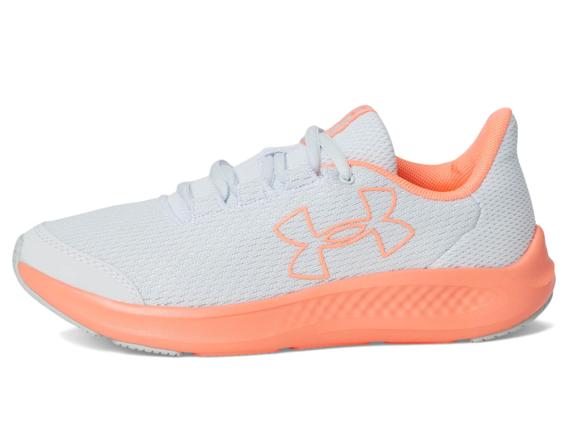 - Dive into action wearing the Under Armour® Kids Grade School Charged Pursuit 3 Big Logo! Designed with breathable and lightweight textile upper, these shoes will keep your little one’s feet feeling fresh all day long. The textile lining and insole provide added comfort, while the lace-up closure ensures a secure fit. Plus, with a low-top silhouette, they’ll have the flexibility they need to tackle any adventure that comes their way.
