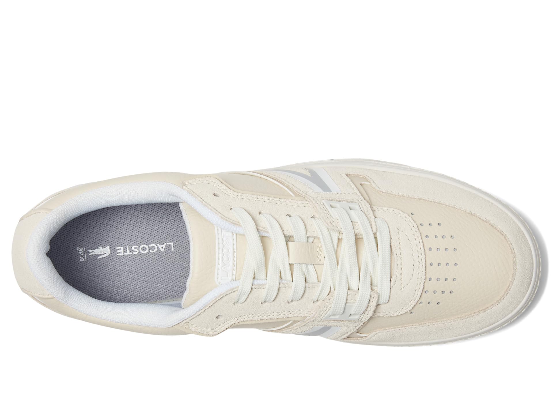 - Keep going on the track wearing the Lacoste™ L001 Sneakers. Made of leather upper, the sneakers feature polyester lining, and comfortable insole. A round toe, lace closure, and sports-inspired aesthetics make the footwear ideal for sporty lifestyle.