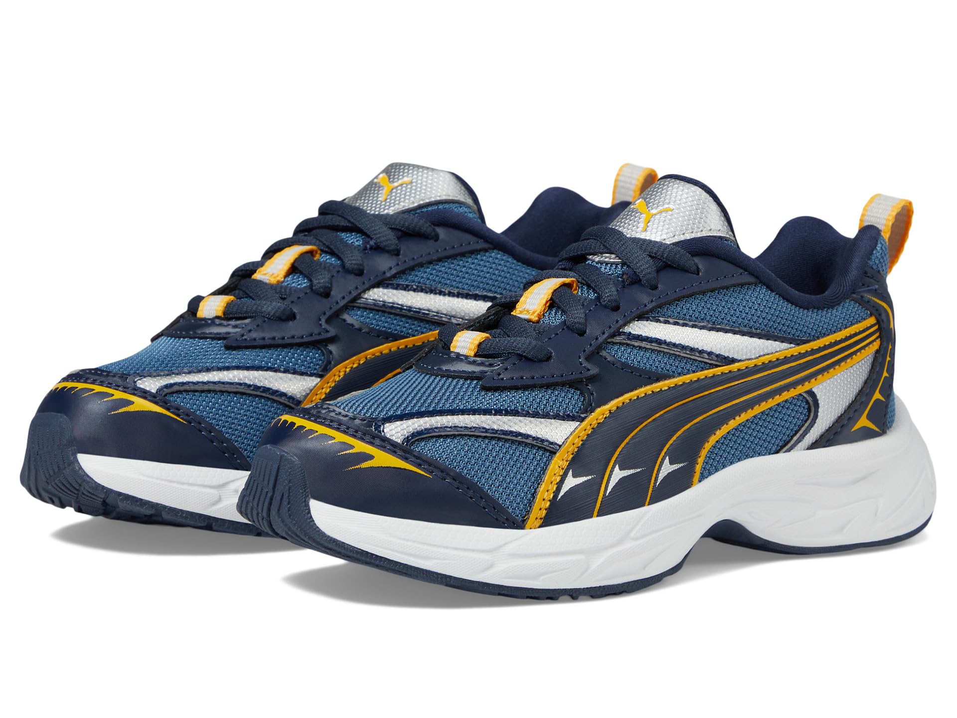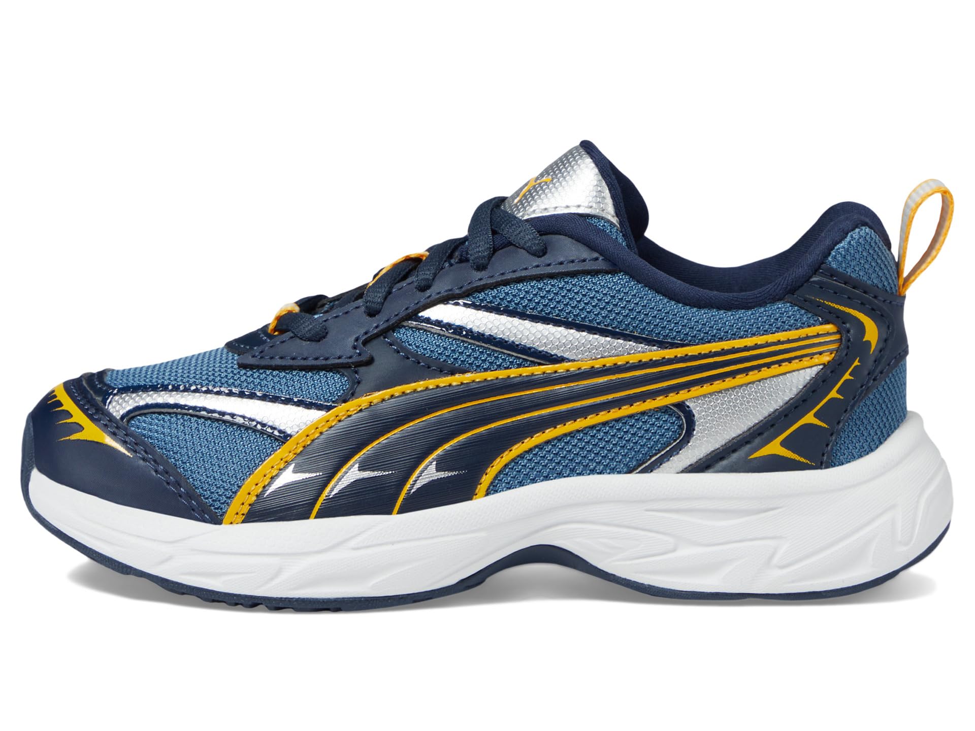 - The PUMA® Kids Morphic Sneakers come in an athletic silhouette that stands out with a progressive and dynamic look, making it the perfect kick to bring a trend-forward edge to any ‘fit. The sneakers feature an open mesh base with synthetic leather overlays & glossy prints, textile lining, and rubber insole. The lace-up closure on the sneakers allows easy adjustability and the ankle pull tab is designed for easy donning & doffing.