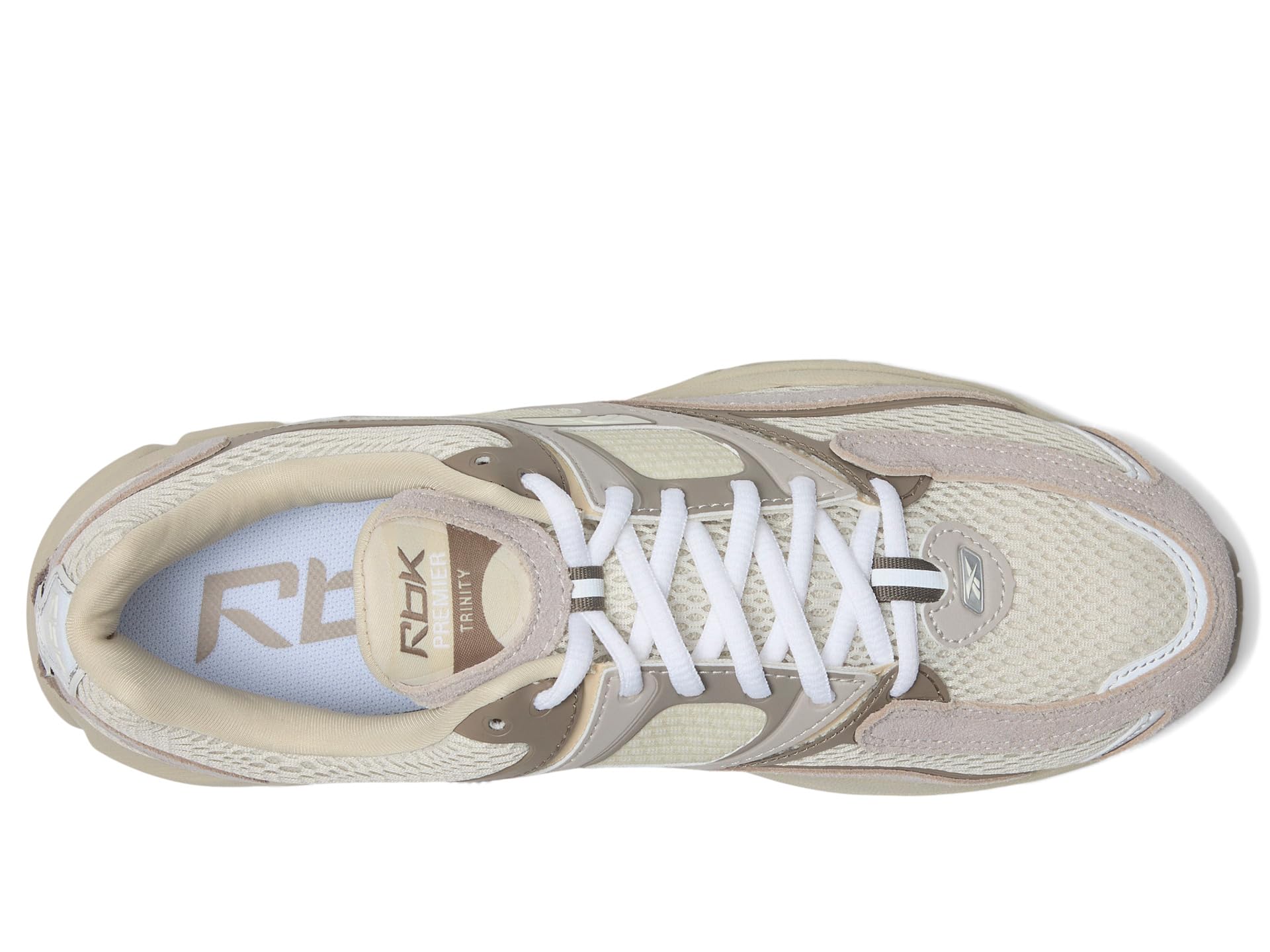 - Relive the 90s styling Reebok® Lifestyle Premier Trinity. Inspired by the early 2000’s performance running silhouette, this sneaker combines retro flair with modern comfort. Featuring a premium leather upper and lining, it exudes a sleek, stylish vibe while offering lasting durability. The rubber insole and outsole provide superior traction and support for all-day wear. With a secure lace-up closure, you’ll enjoy a snug, personalized fit every time.