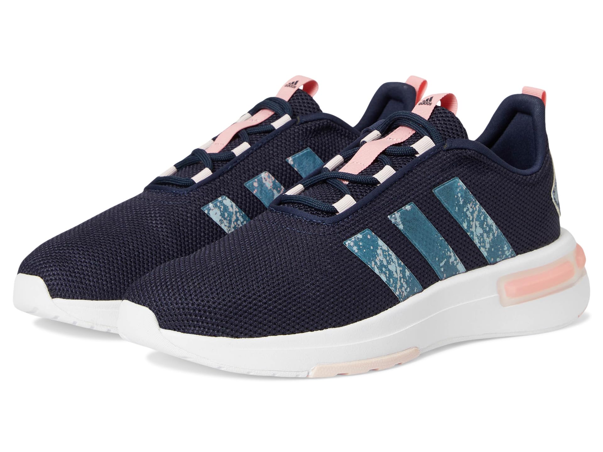 - For active feet and everyday adventures, these adidas® Kids Racer TR 23 Shoes match their every move. The Cloudfoam midsole cushions their feet for all-day comfort. The mesh upper is soft and flexible. 3-Stripes keep them looking fresh from day one and the lace-up closure allows easy adjustability. Made with a series of recycled materials, this upper features at least 50% recycled content. This product represents just one of our solutions to help end plastic waste. The low-top sneakers feature a synthetic rubber lining, cushioned insole, and a round toe silhouette. The ankle and tongue pull tab is designed for easy donning/doffing.