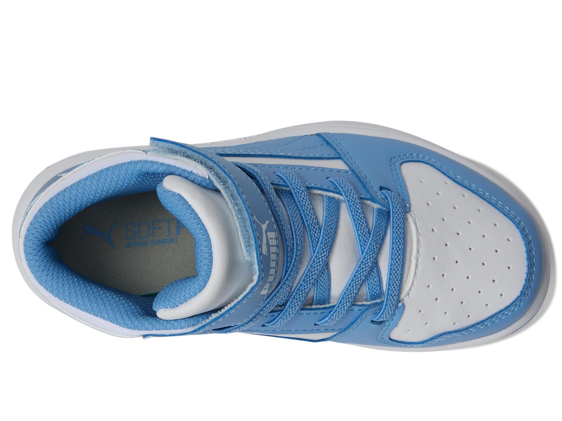 - Add a stylish touch to your little one’s look wearing PUMA® Kids Rebound Layup sneakers. Synthetic leather upper along with a durable cupsole tooling ensures a comfortable and supportive fit. Utilizes Puma’s SoftFoam+, a step-in comfort sockliner designed to provide soft cushioning thanks to its extra thick heel. Hook and loop closure + elastic laces provide secure fit. A plain toe, basketball-inspired design, and classic mid-cut construction give a rebound energy for game.