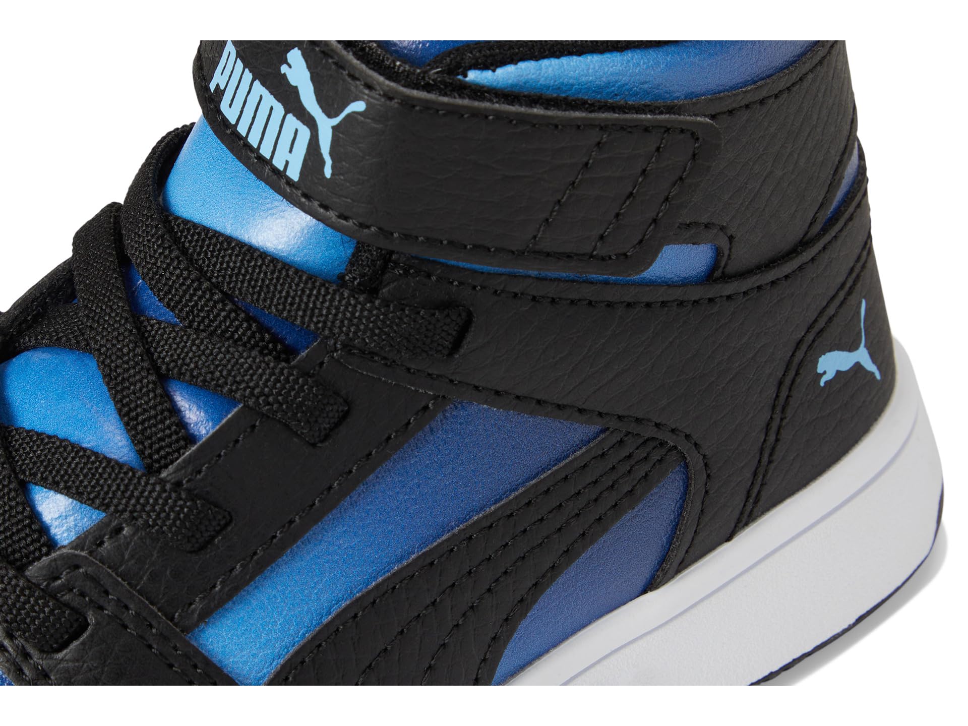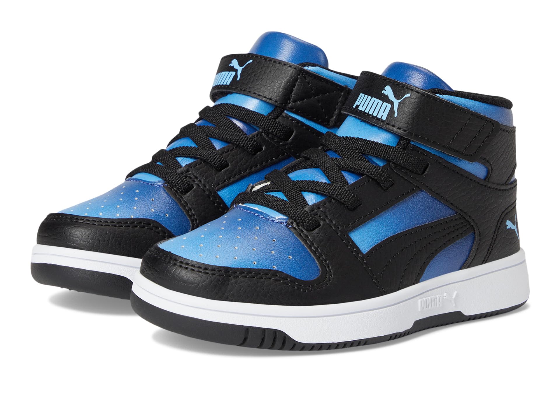 - The PUMA Kids® Rebound Layup Mid Hook and Loop shoes are a new interpretation of a classic mid-cut basketball-inspired trainer, adding a stylish touch to your kid’s game with the new Puma rebound layup. Combining retro and futuristic basketball-inspired style, these sleek sneakers feature a perforated forefront, clean lines, and the iconic Puma Formstrip to have your kid commanding attention both on and off the court. The faux leather upper of these shoes is made with at least 20% recycled material. These mid-top sneakers are made of a step-in comfort rubber insole that provides soft cushioning thanks to their extra thick heel while the polyester lining keeps your kid’s feet cool. Designed with an adjustable hook-and-loop strap and with elastic laces for optimal fit, these sneakers make a great addition to your kid’s footwear collection.