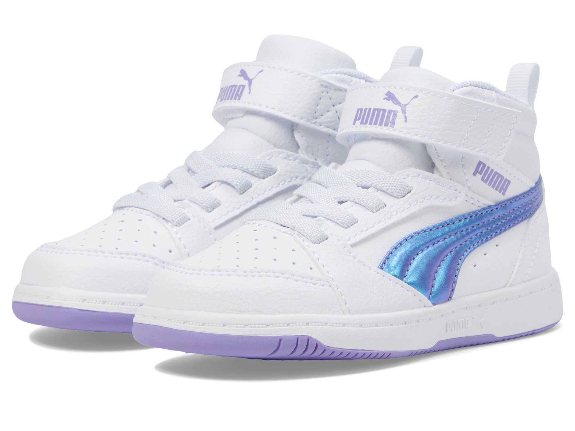 - Impart impeccable finesse to your kiddo’s look by opting for the PUMA® Kids Rebound Layup Shoes. The mid-top footwear features lace-up closure with adjustable hook-and-loop strap and heel pull tabs for easy wear.