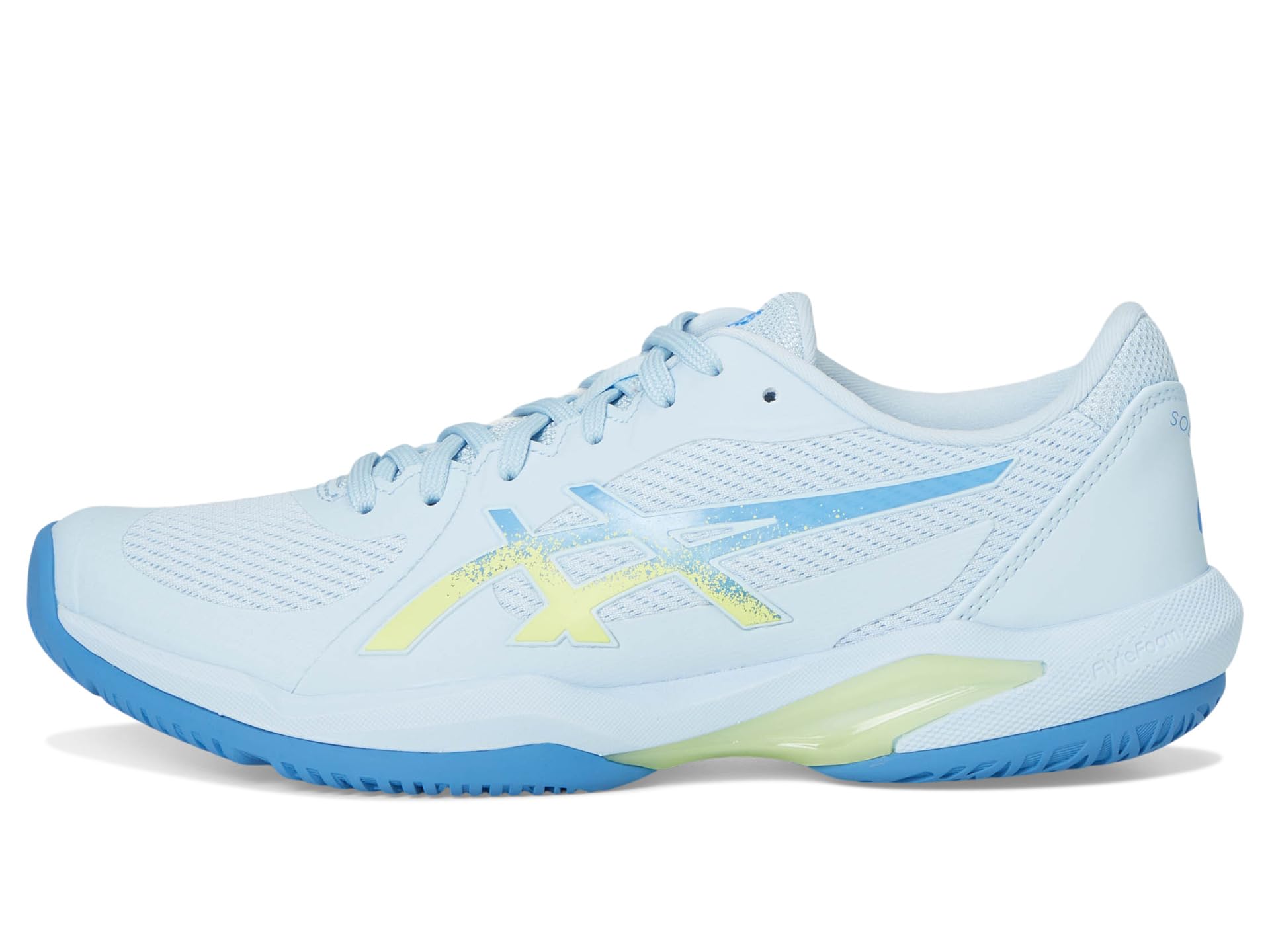 - March ahead with your defiant flair wearing the ASICS® Women’s Solution Swift FF 2 Tennis Shoe. The lace-up footwear features flexible polyester upper construction with toe reinforcement for durability and FLYTEFOAM® midsole cushioning provides lightweight impact absorption.