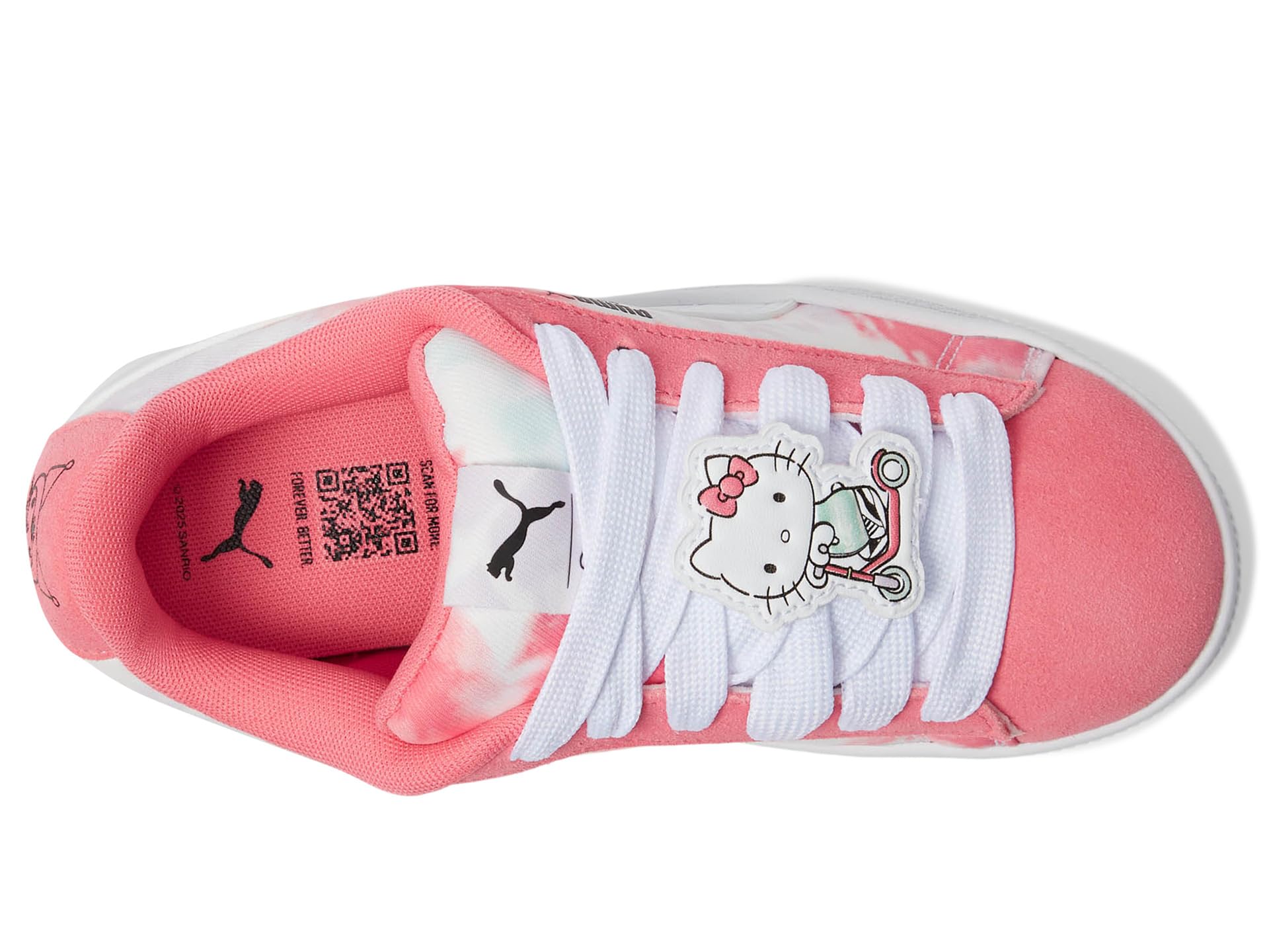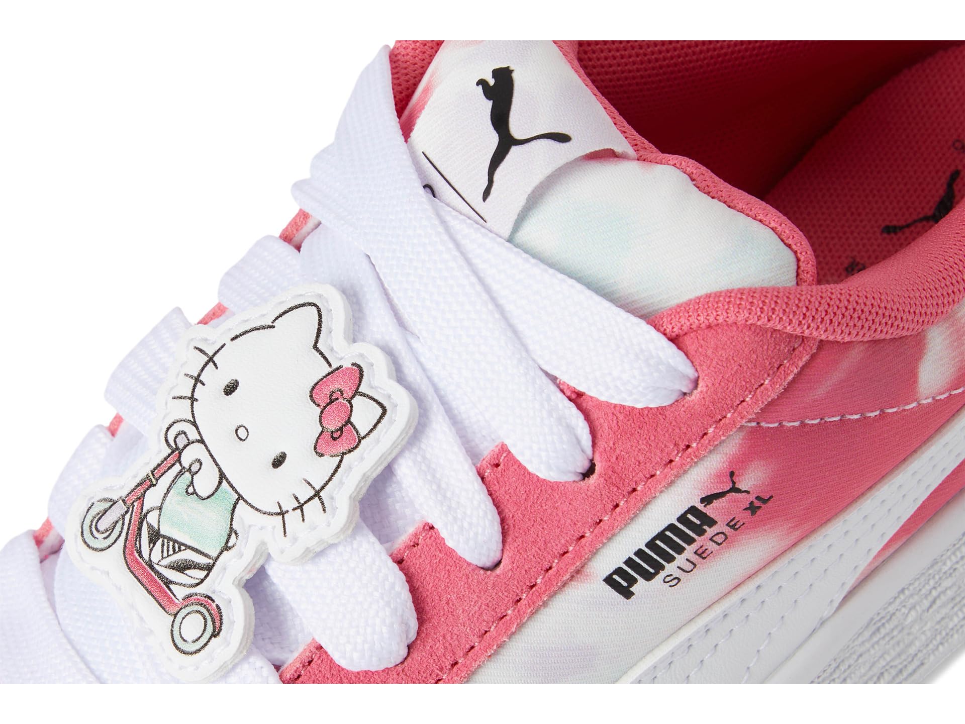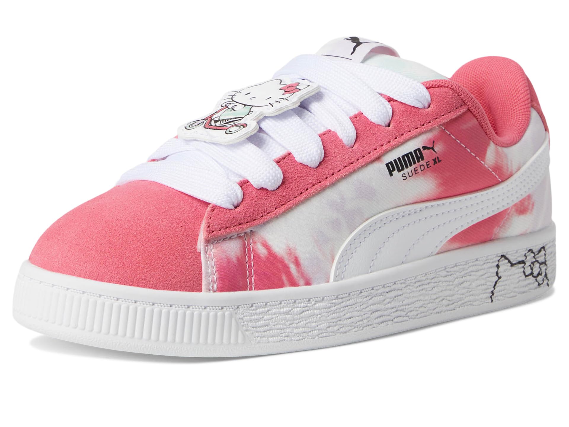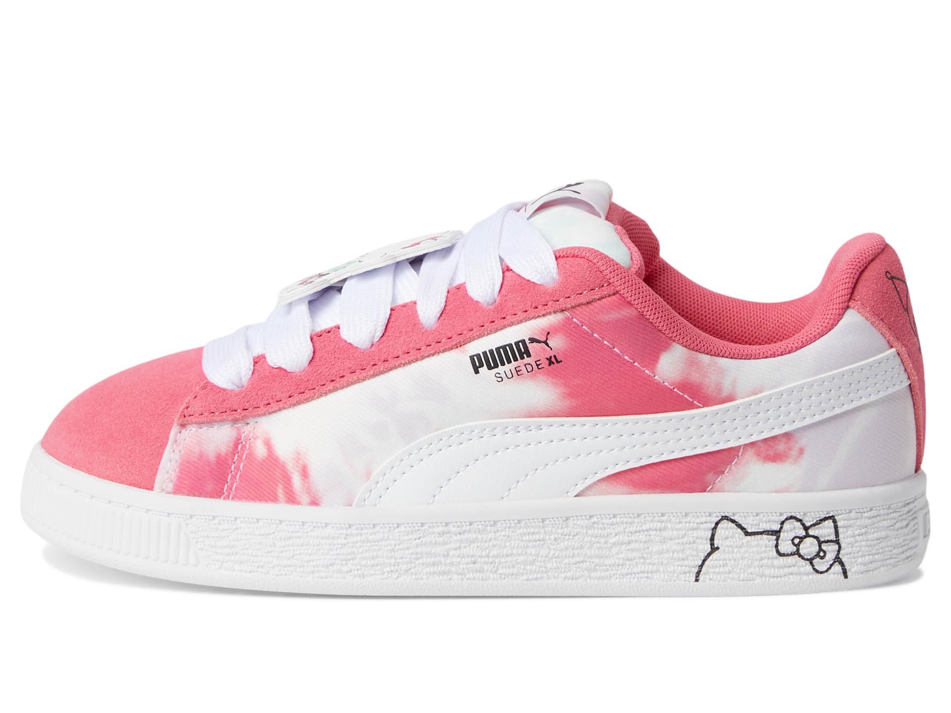 - This fresh take on the classic suede draws inspiration from PUMA’s heritage within breakdancing and its influence on modern streetwear. The PUMA® Kids Suede Xl Hello Kitty And Friends The Suede’s Iconic DNA, but gives it a twist with an exaggerated padded collar and tongue, plus a chunkier sole. In this New PUMA X Hello Kitty And Friends Collection, Hello Kitty And Her Friends roller skate along the beautiful coast of Los Angeles. The collection is inspired by beach vibes, with a watercolor effect inspired by La Sunsets. Targeting pre-schoolers, this girly collection features skate-inspired vibes, trendy silhouettes, and new materials, for a unique and fun approach. The low-top sneakers feature suede upper. polyester lining, and rubber insole.