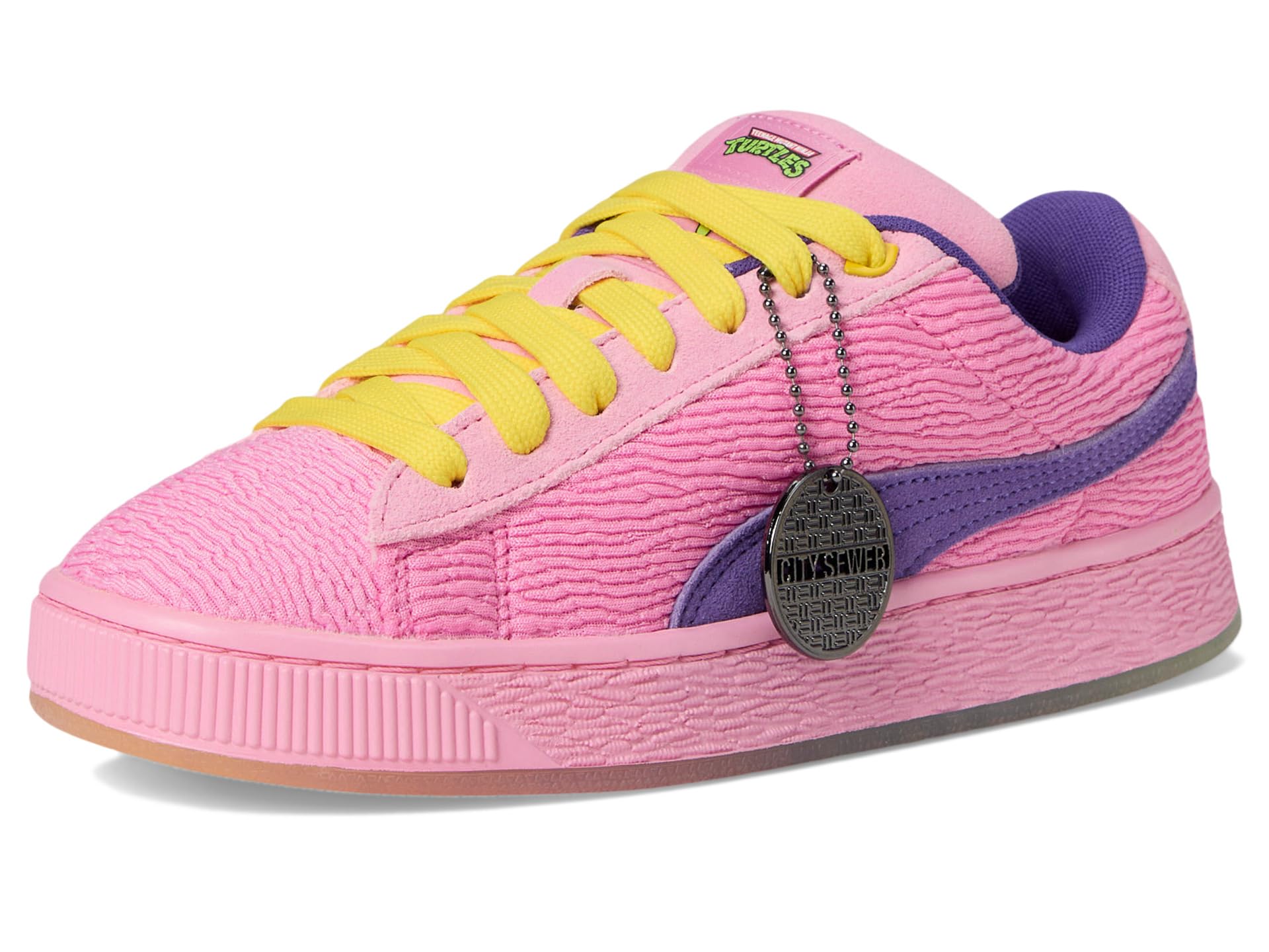 - Let your kid channel their inner ninja wearing the PUMA® Kids Suede Xl Teenage Mutant Ninja Turtles shoes. This electrifying collection draws inspiration from bold colors, eclectic textures, and captivating artwork. The suede upper features an exaggerated padded collar and an extra-large tongue that ensures all-day comfort. These lace-up sneakers are crafted with a rubber insole and polyester lining. Stylish and comfortable, these low-top shoes are the perfect mix of understated and elevated.